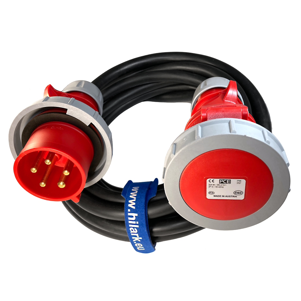 32A Rallonge triphasée CEE IP67 5×4 H07RN-F PCE 5 broches câble en Néoprène 400V