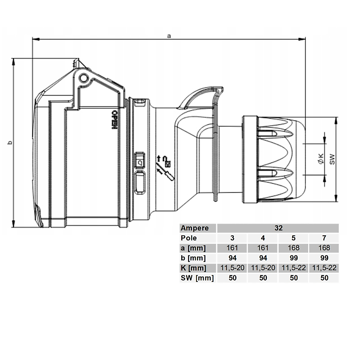 - courant nominal IEC : 32A