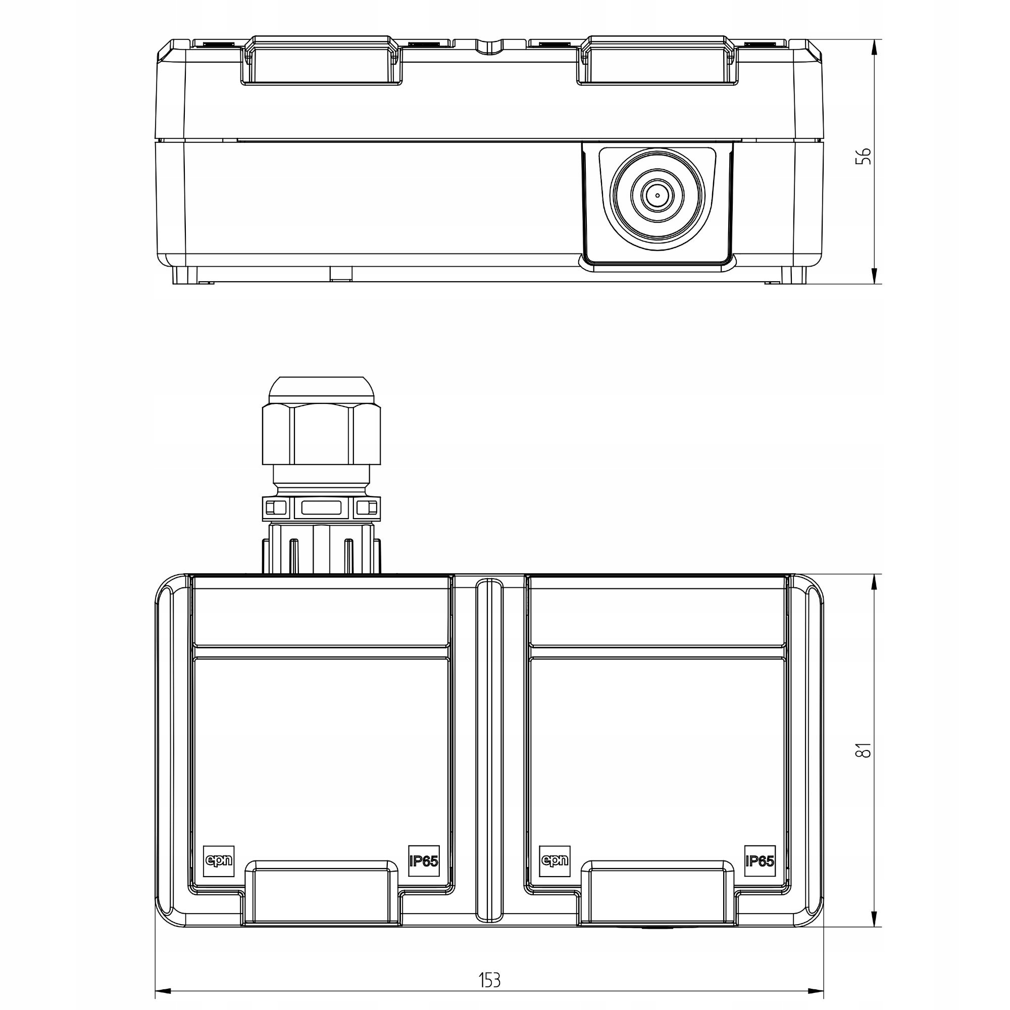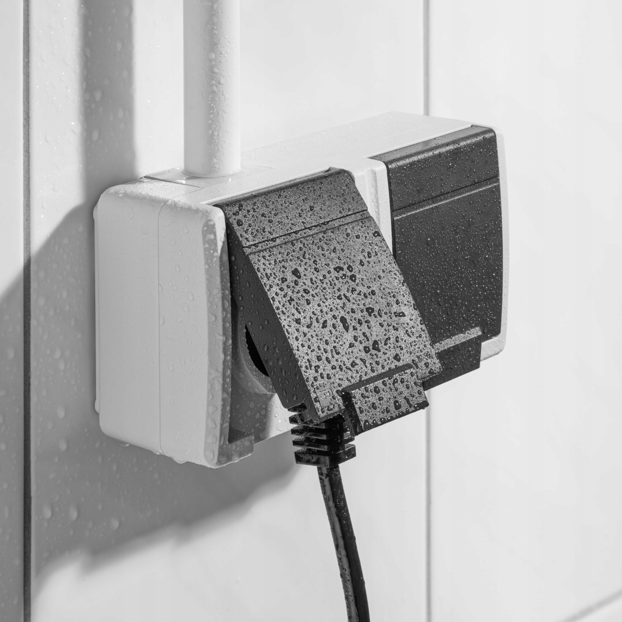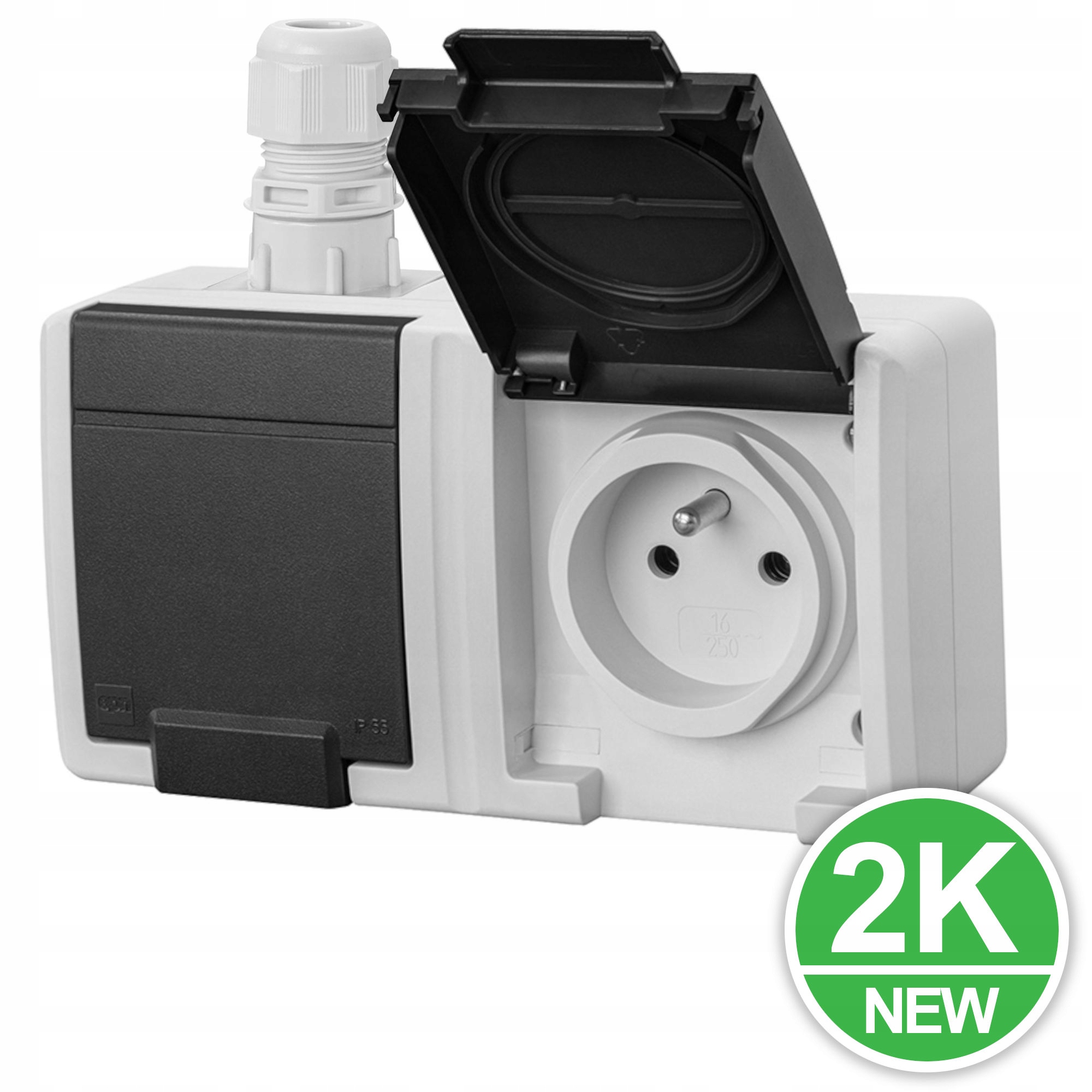 PRISE DOUBLE HORIZONTALE AVEC VOLET ÉTANCHE IP65 (PRESSE-ÉTOUPE) AVEC TERRE EPN AQUANT 2K, COULEUR GRIS