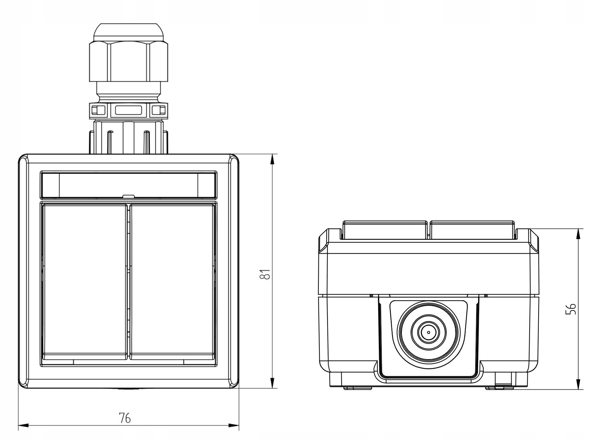 • Dimensions (larg. × haut. × prof.): 76 × 81 (125) × 56 mm