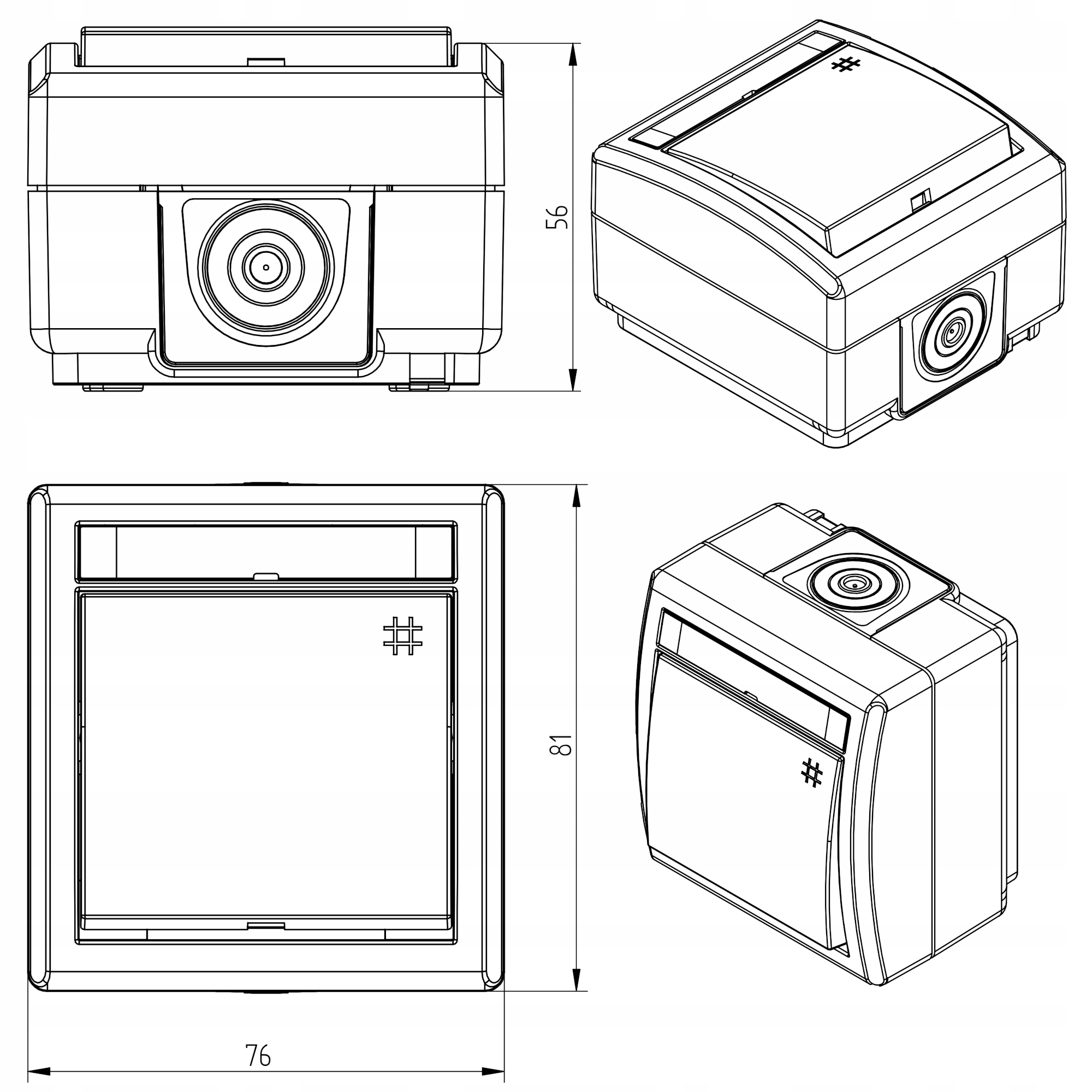 - Dimensions (larg. × haut. × prof.): 76 × 81 × 56 mm