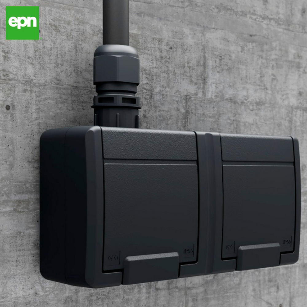 Prise double horizontale étanche IP55 en saillie AQUANT 2K 5042-17 EPN