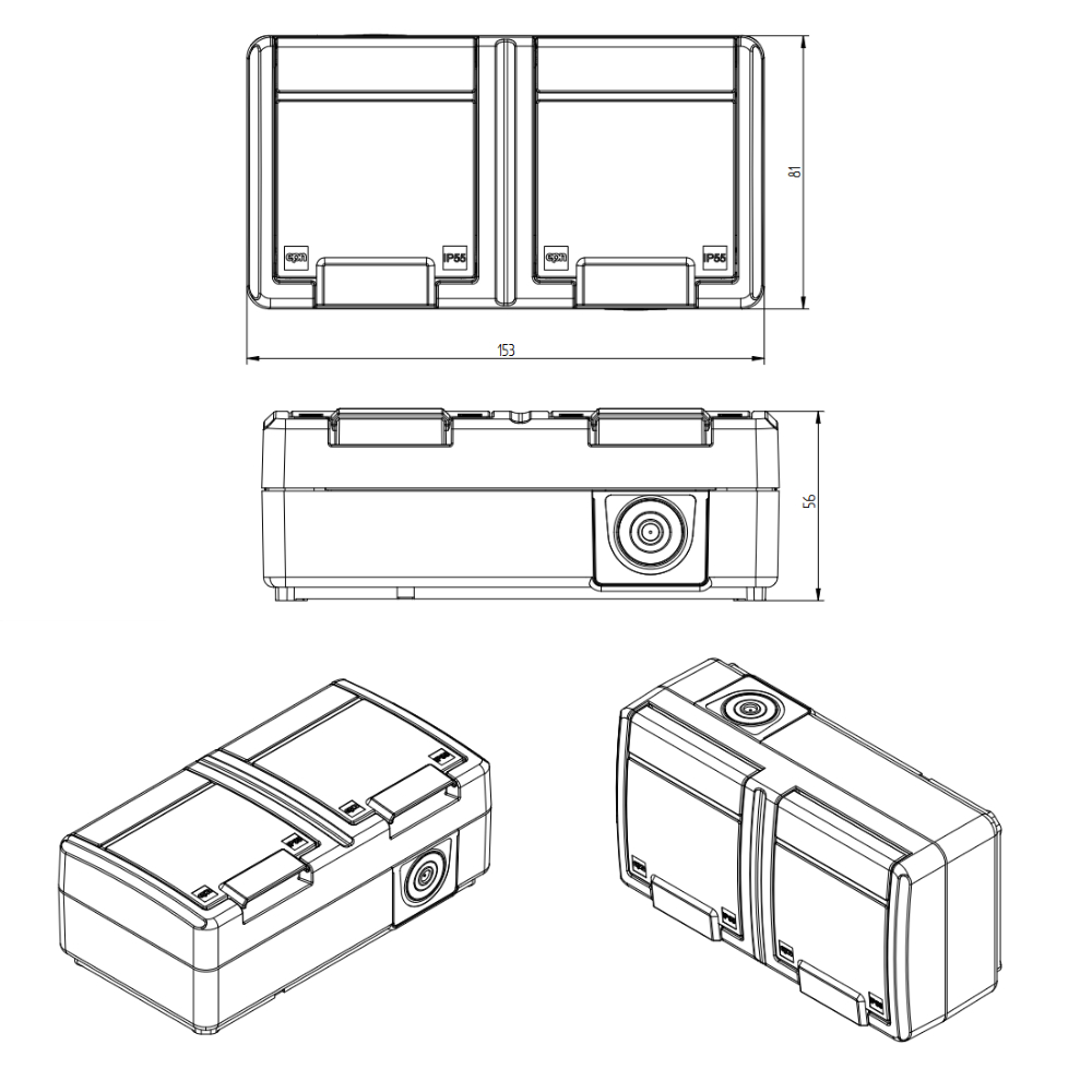 - Type de prise : double, horizontale, en saillie, 2x2P+T