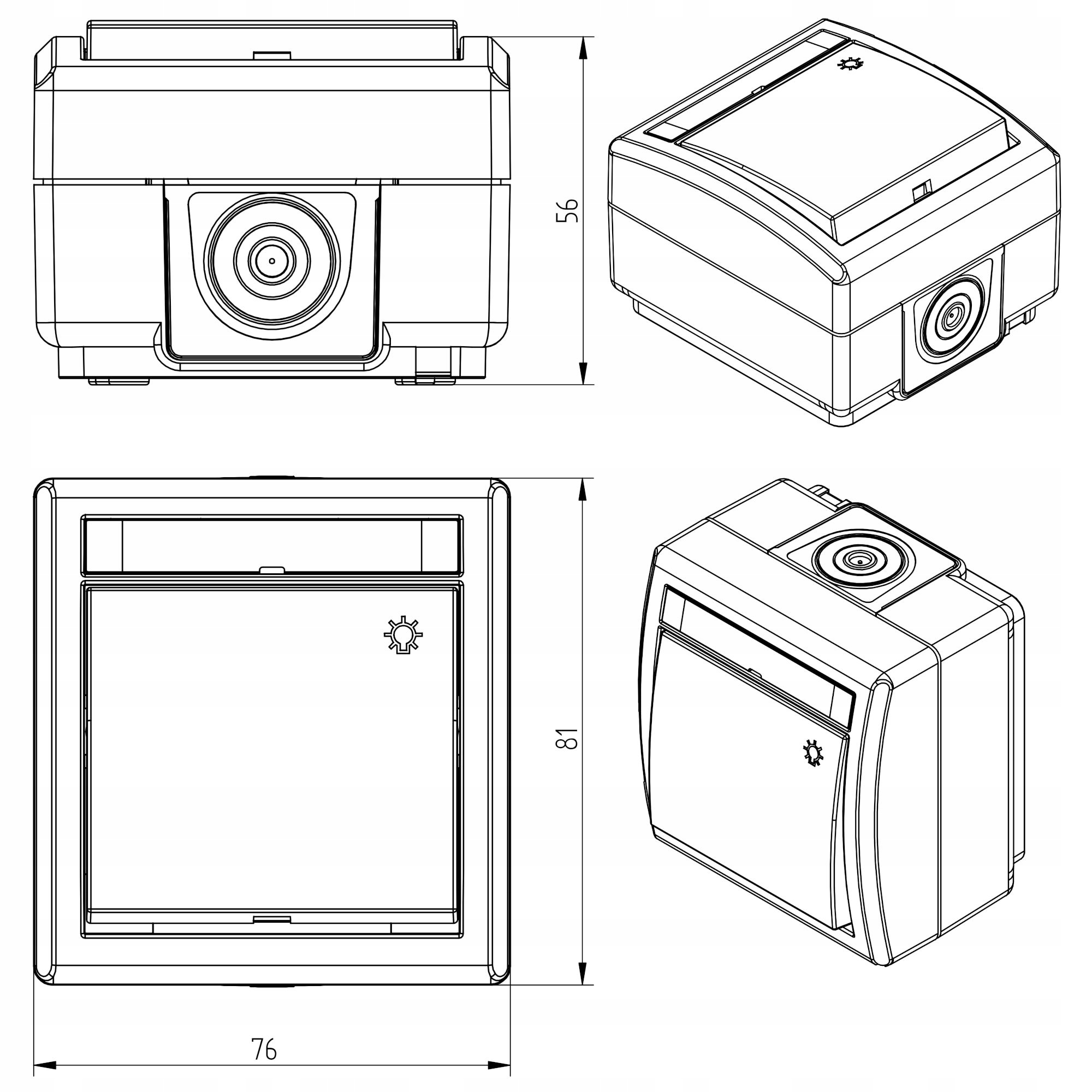 - Dimensions (larg. × haut. × prof.) : 76 × 81 × 56 mm