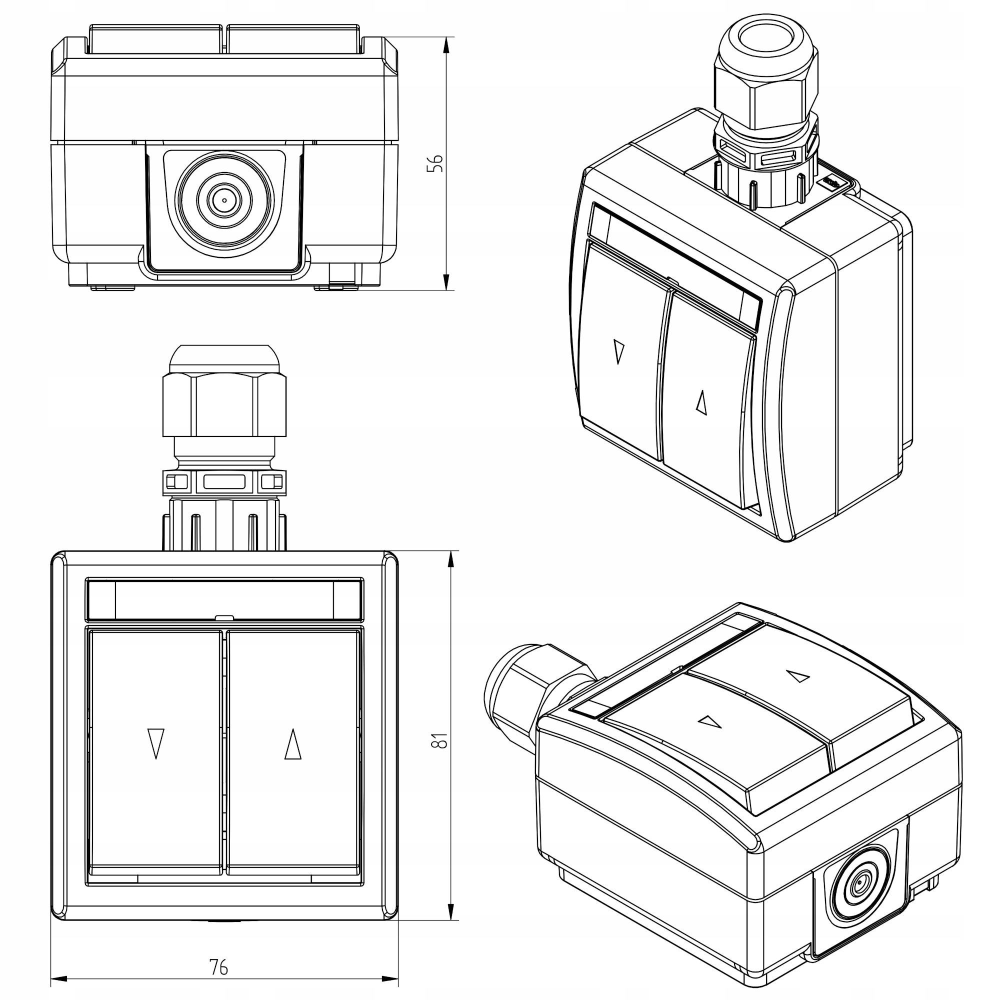 BOUTON DOUBLE SAILLIE ÉTANCHE IP65, EPN AQUANT 2K ŁNT-8, VOLET ROULANT, COULEUR GRIS/ANTHRACITE