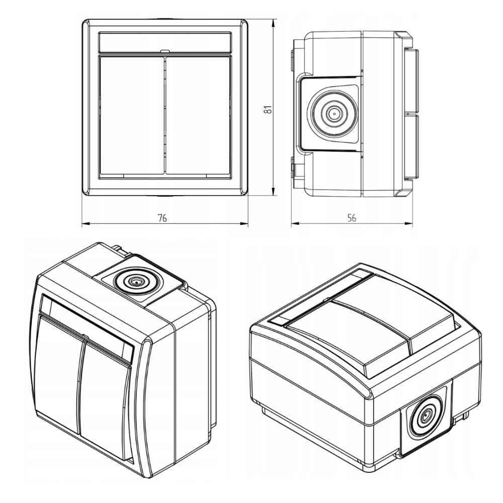 - Dimensions (larg. × haut. × prof.) : 76 × 81 × 56 mm