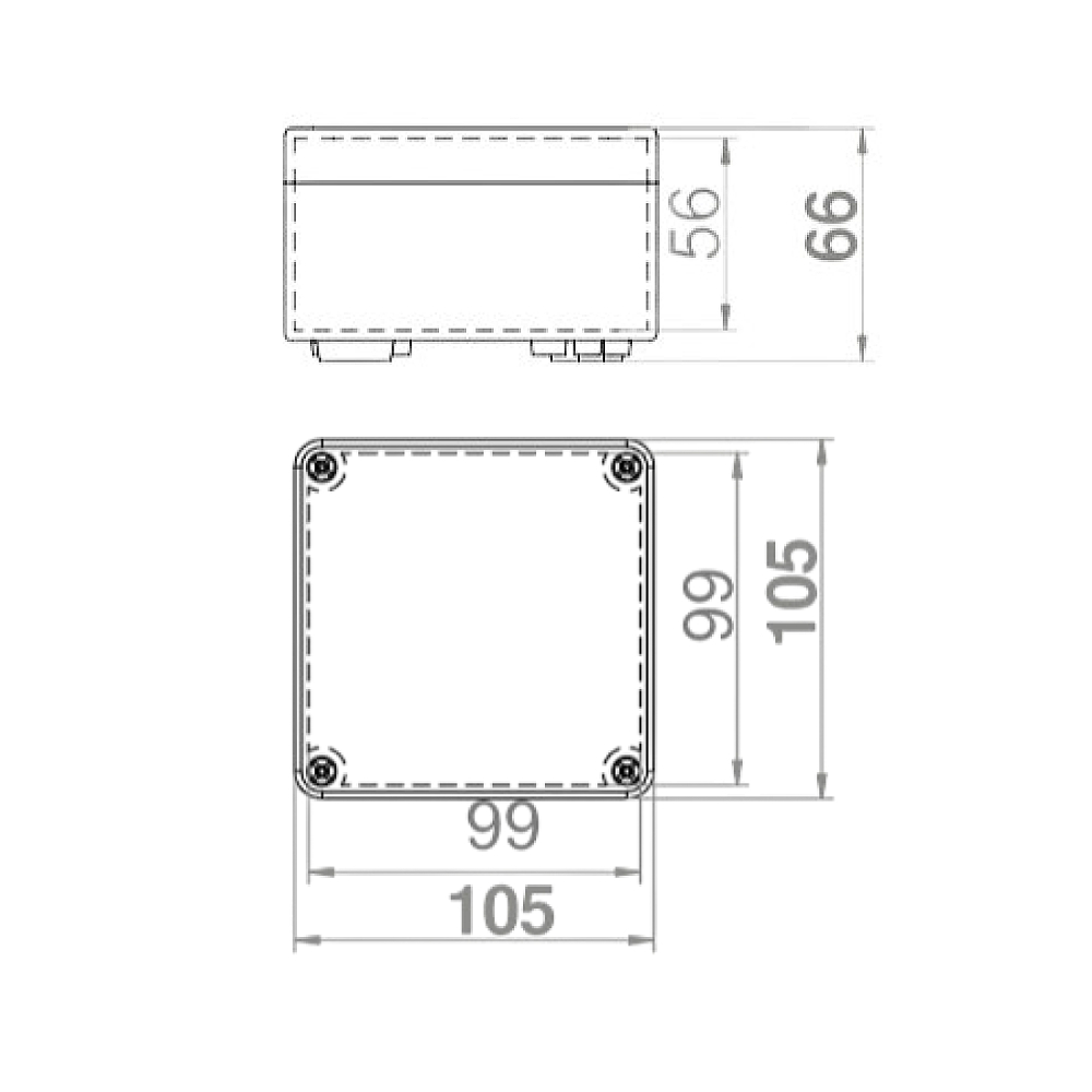 dimensions (larg.×haut.×prof.) :intérieures : 99x99x56mm extérieures : 105x105x66 mm