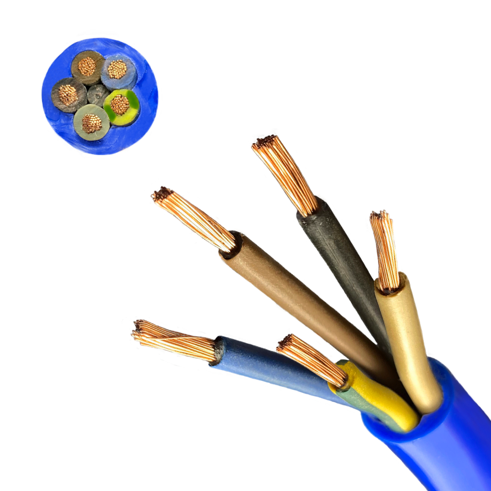 Câble en polyuréthane (PUR) H07BQ-F 5×2,5 mm² 10m bleu