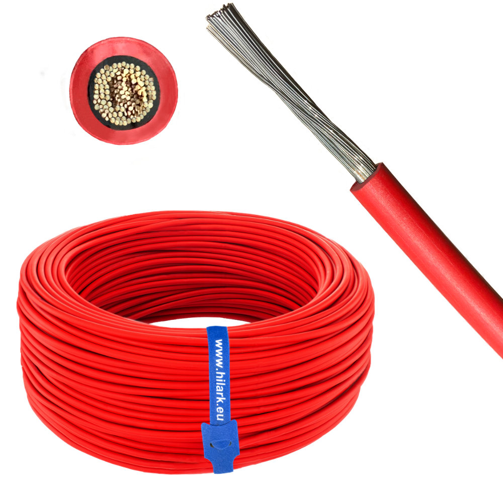 Application : dans les installations PV, dans les connexions entre modules photovoltaïques, entre les rangées de modules ainsi que pour les connexions des ensembles de modules avec l’onduleur ; pour le câblage de tout type de système photovoltaïque. Il peut être utilisé aussi bien à l’intérieur qu’à l’extérieur des bâtiments, ainsi que directement dans le sol. La durée de vie prévue est de 25 ans. Câble fabriqué conformément à la norme européenne rigoureuse EN 50618 ainsi que PN-EN 60228 et seuls ces câbles sont admis pour des raisons de sécurité à être utilisés dans l’installation PV (seuls les conducteurs correctement fabriqués, ayant passé des tests de longue durée répondant à des exigences aussi élevées, reçoivent le certificat d’un laboratoire accrédité).