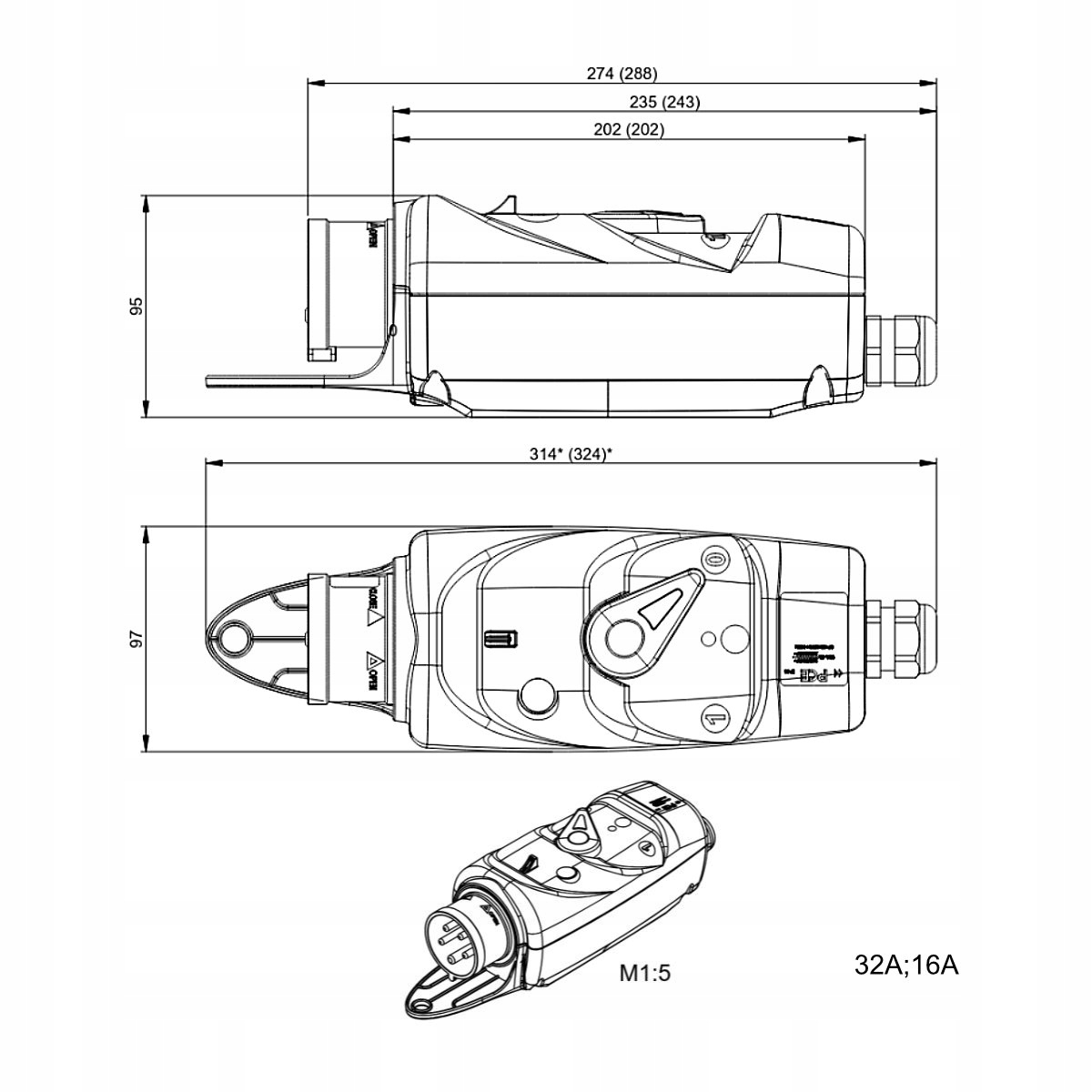 CEE – Fiche avec protection moteur (PKZM0) PI + RFC 32A 5 broches 6h (6,3-10A) IP44