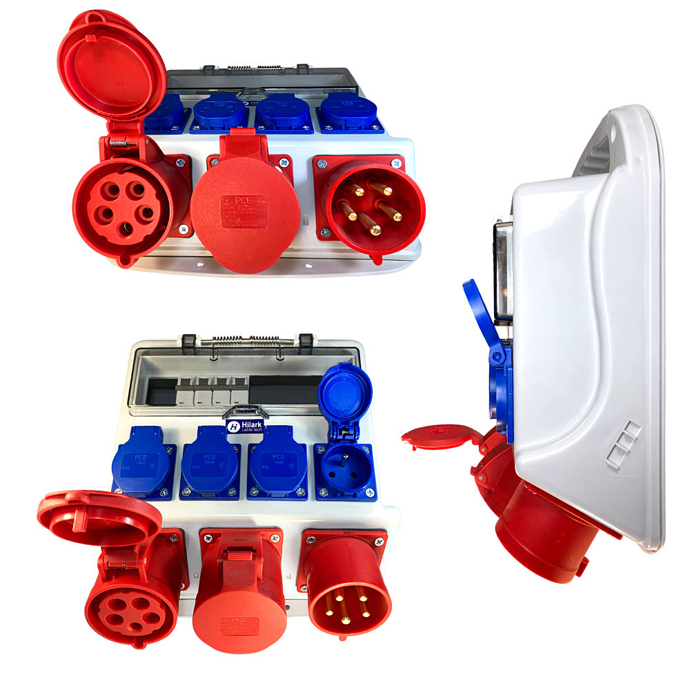 • 4 x prise PCE 1040-bs monophasée avec broche de terre 16A 230V IP54