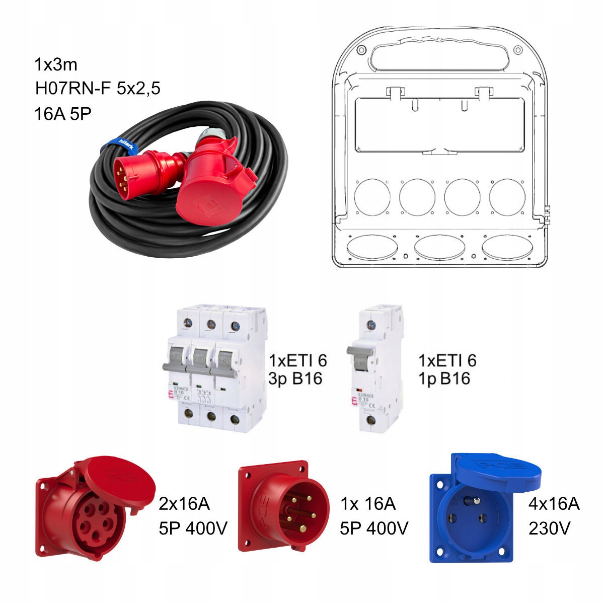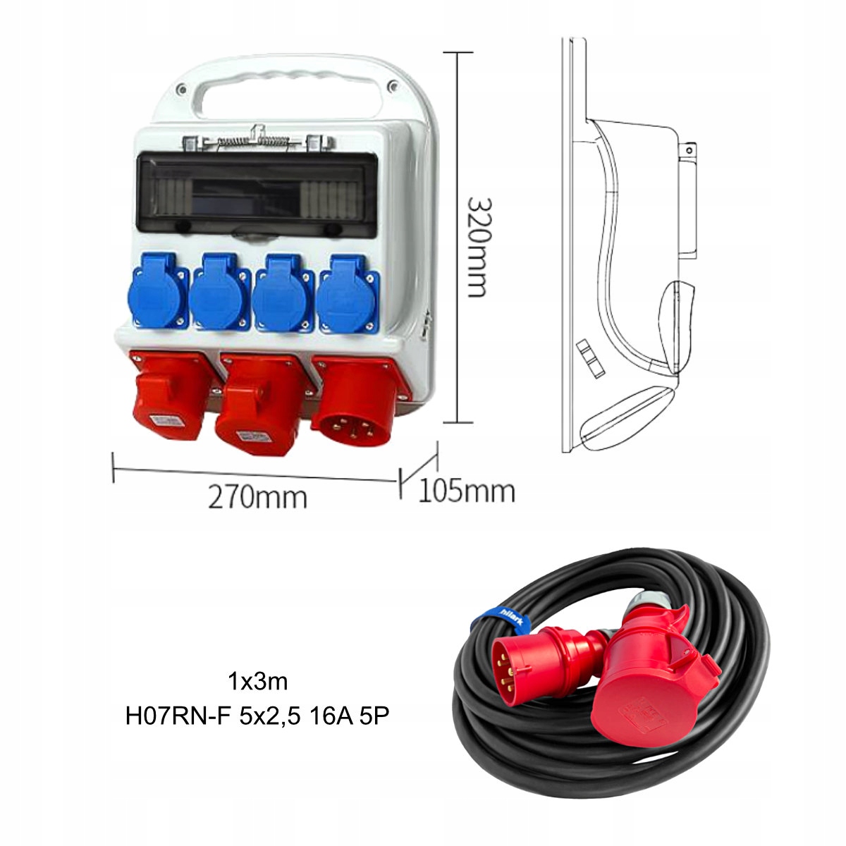 COFFRET DE CHANTIER AVEC DISJONCTEUR SURINTENSITÉ 4x16A 230V, 2x16A 400V, et 1x16A 400V 5P + Rallonge triphasée CEE 3m H07RN-F 5×2,5 16A 5P IP44/54