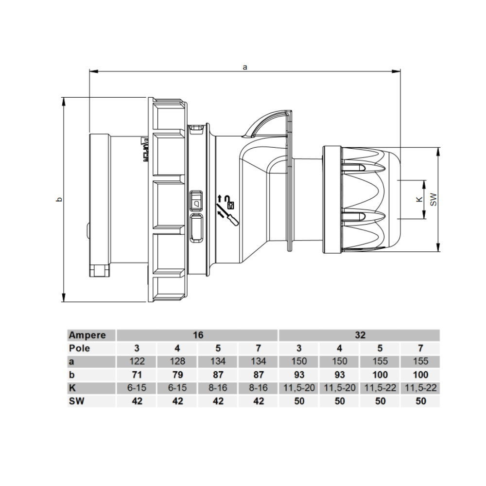 Fiche PCE 32A IP67 série 0242-6