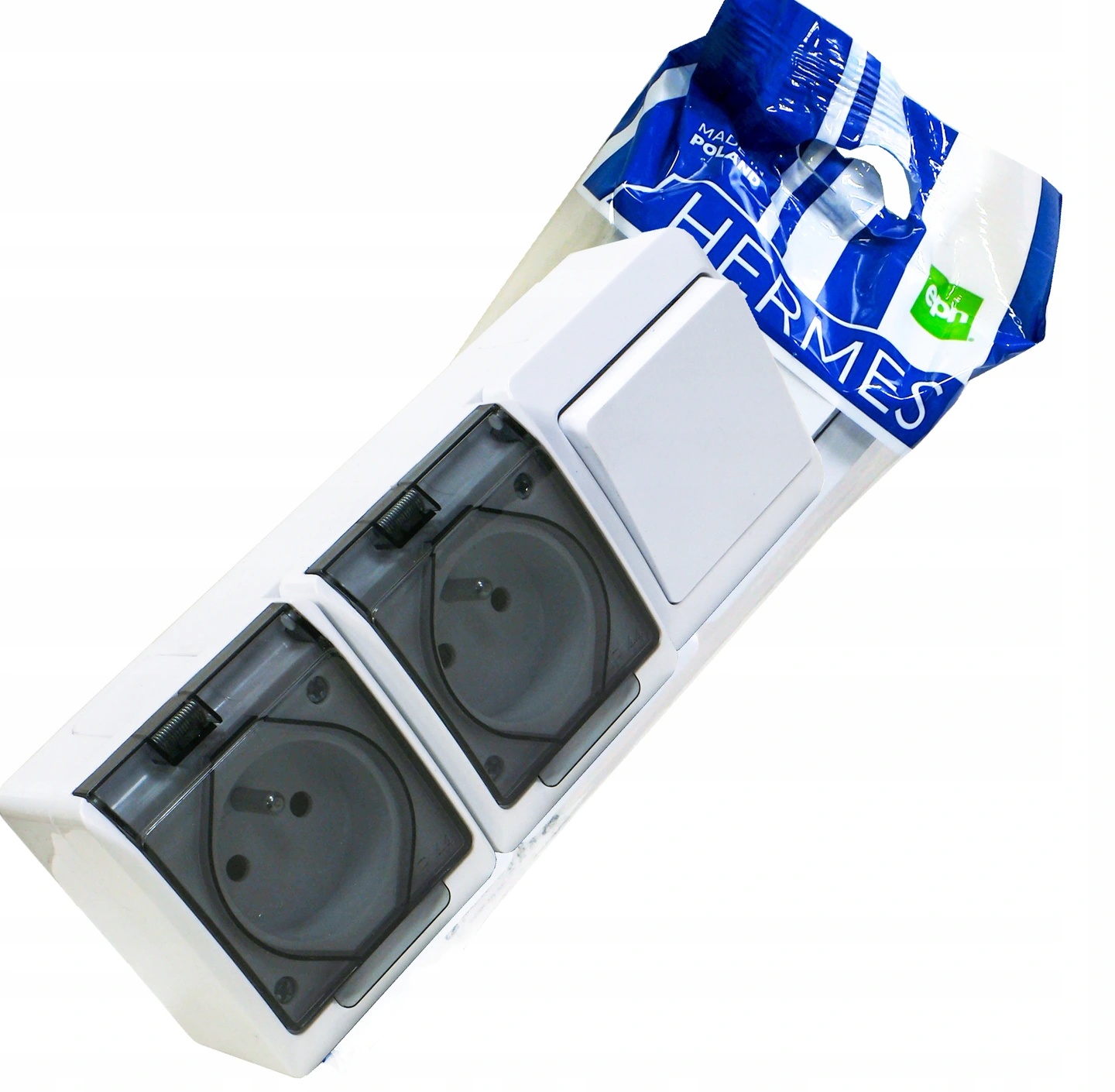 Prise double 0327-21 interrupteur unipolaire blanc fumé IP44 HERMES