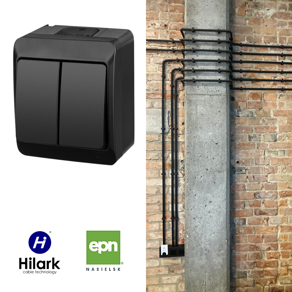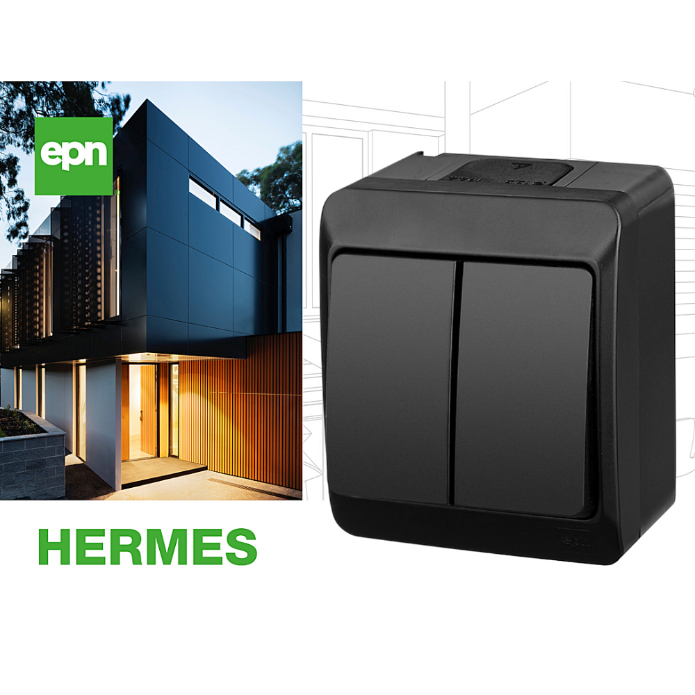 HERMES Interrupteur hermétique en saillie IP44 noir double classique EPN