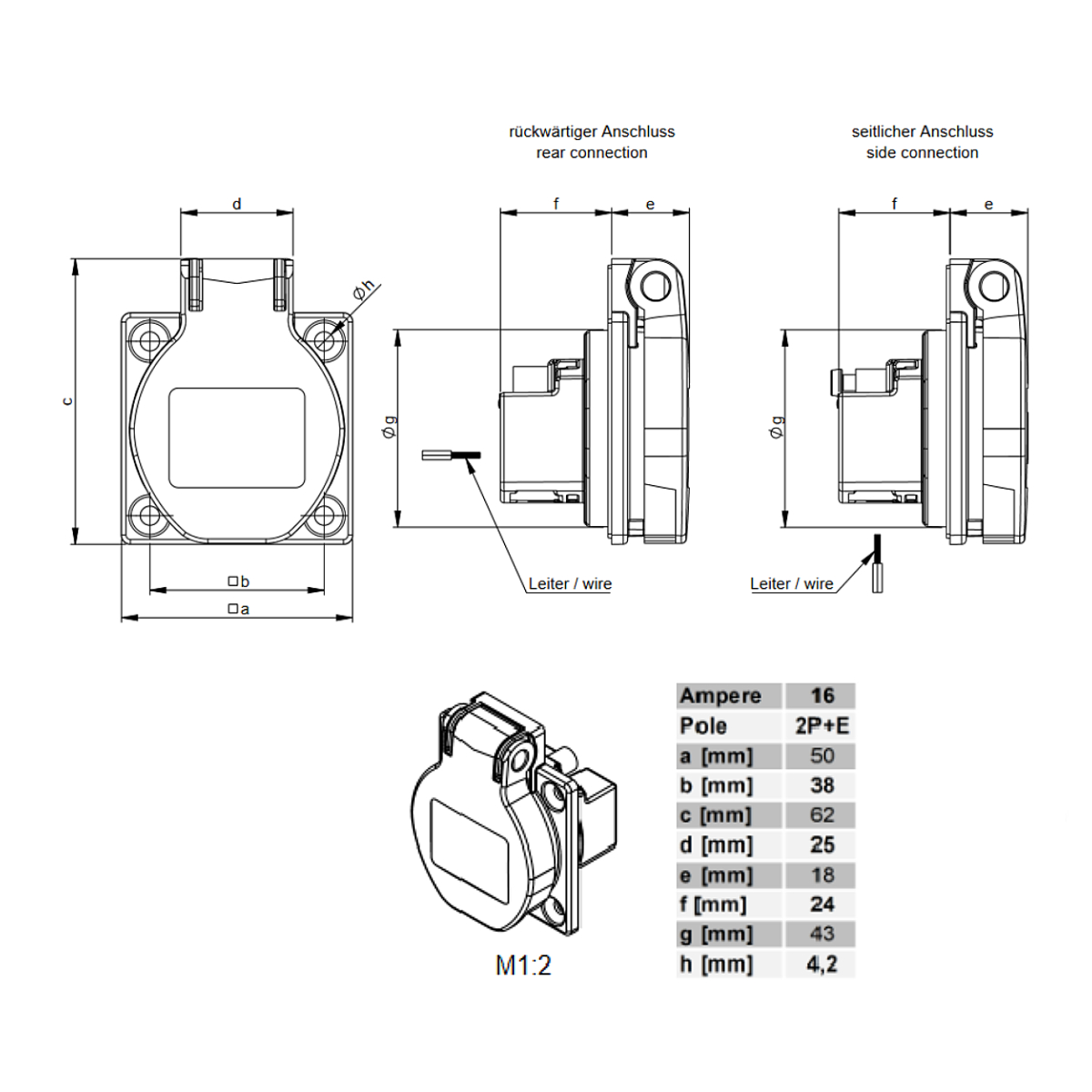 La prise de tableau 16A 3x2P+T 400V IP54 est utilisée pour le raccordement des appareils électriques