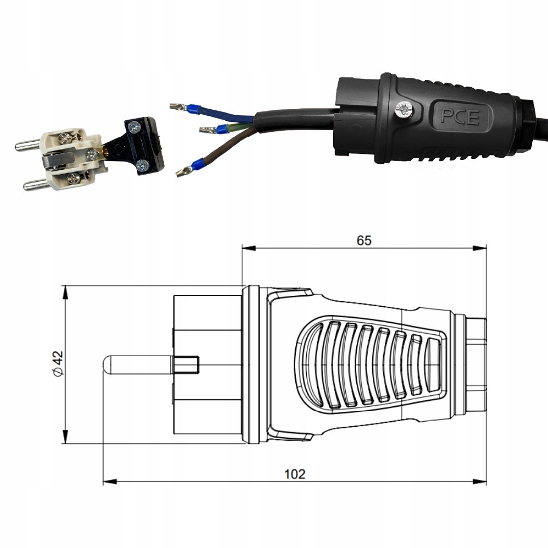 Przedłużacz zapewnia napięcie znamionowe 300/500V.