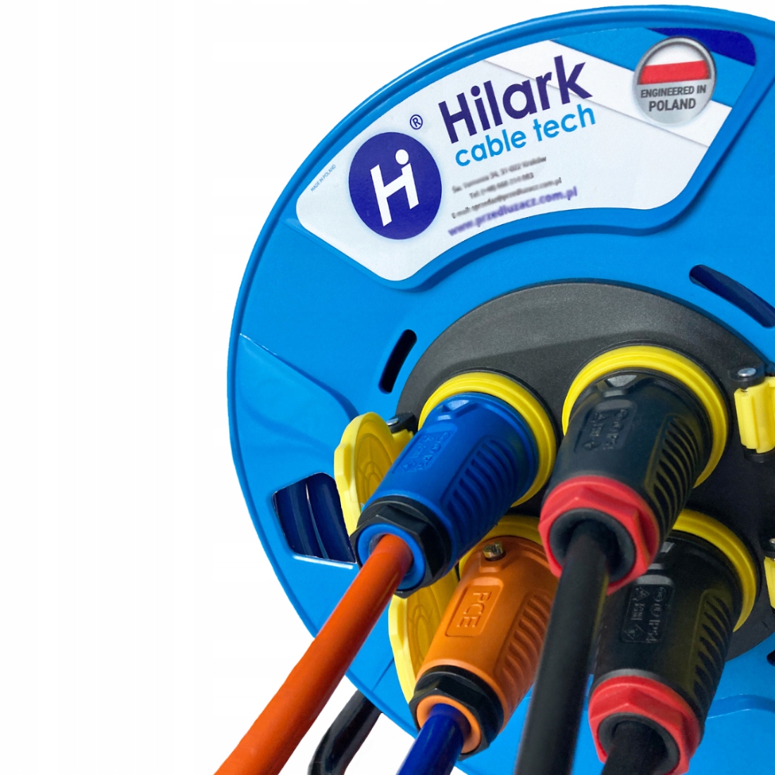 Przedłużacz poliuretanowy CEE na bębnie,o standardzie wodoszczelności IP44 zapewni bezpieczną pracę w miejscach mokrych czy wilgotnych, przeznaczony także do zastosowań zewnętrznych; i do połączeń dla maszyn i obiektów w obszarach, w których mogą wystąpić uszkodzenia mechaniczne, naprężenia wilgoć i pyły. Solidnie wykonany bęben umożliwia szybkie i łatwe rozwijanie i zwijanie przewodu przedłużacza a dzięki ergonomicznej, gumowanej rączce pozwala na wygodne przenoszenie przedłużacza w pożądane miejsce. Dzięki zastosowaniu bębna z czterema gniazdami możliwe jest rozdzielenie napięcia jak i podłączenie jednocześnie kilku urządzeń do jednego źródła zasilania. Doskonały do kamperów, niezbędny w miejscach gdzie potrzebny jest niezawodny, wytrzymały kabel odporny na warunki atmosferyczne.