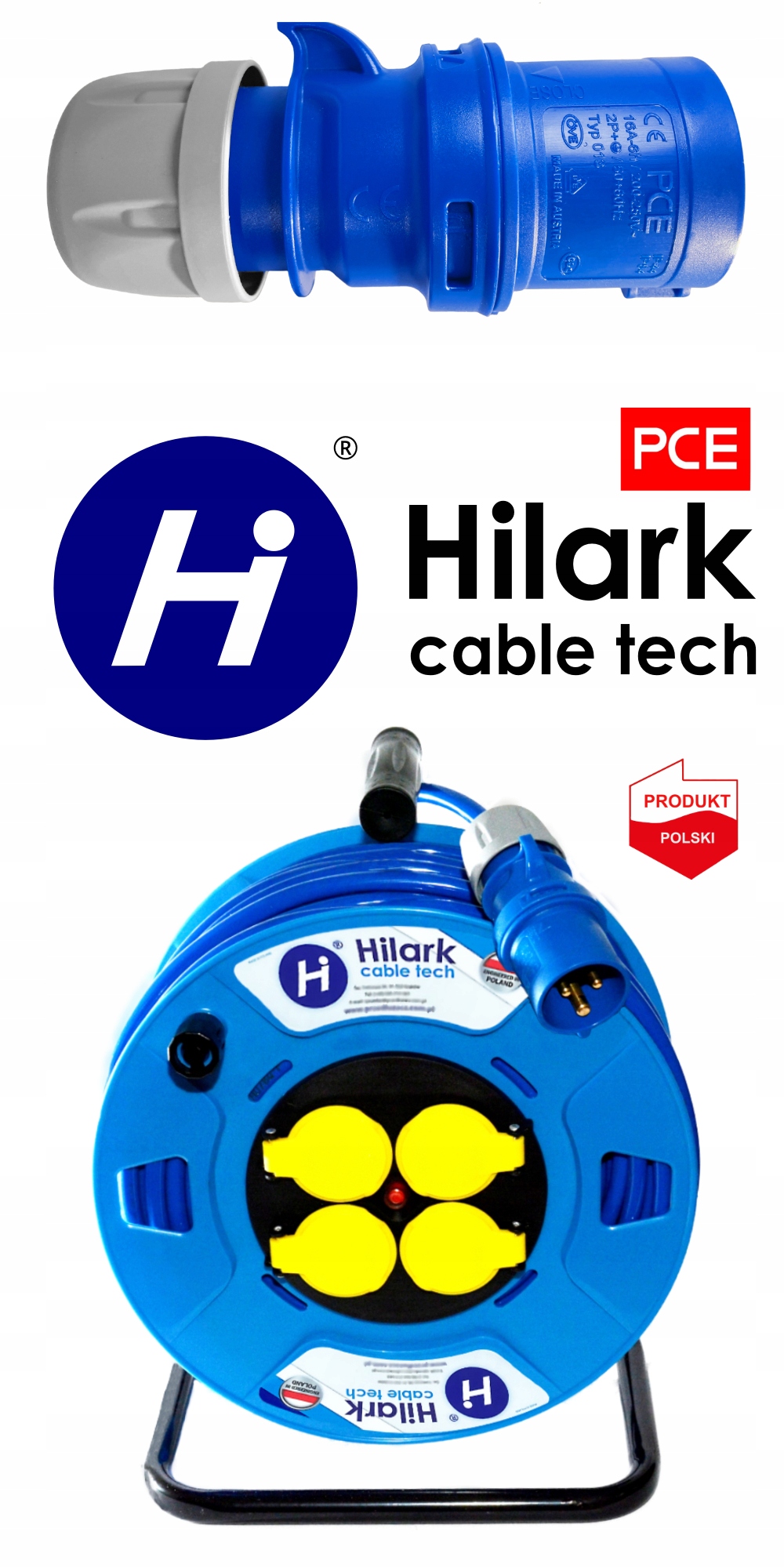 Hilark przedłużacz CEE na bębnie z wtyczką 16A 3P, poliuretanowy PUR 3g2,5 niebieski 10m