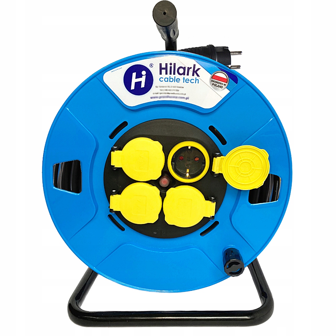 Przedłużacz na neoprenowym kablu 3g2,5, zapewni bezpieczną pracę w zamkniętych pomieszczeniach, w miejscach mokrych czy wilgotnych (AD6 lub AD7), przeznaczony także do zastosowań na zewnątrz; do połączeń dla maszyn i obiektów w obszarach, w których mogą wystąpić uszkodzenia mechaniczne, naprężenia, wilgoć i pyły, smary i oleje. Solidnie wykonany bęben umożliwia szybkie i łatwe rozwijanie i zwijanie przewodu przedłużacza a dzięki ergonomicznej, gumowanej rączce pozwala na wygodne przenoszenie w pożądane miejsce. Dzięki zastosowaniu bębna z czterema gniazdami możliwe jest rozdzielenie napięcia jak i podłączenie jednocześnie kilku urządzeń do jednego źródła zasilania. Doskonale sprawdzi się jako wyposażenie warsztatów, do podłączenia elektronarzędzi (wiertarki, piły tarczowe, przenośne silniki i generatory); do urządzeń ogrodowych, domowych, budowlanych, rolniczych i komercyjnych (np. do podłączenia kilku mikrofonów). Niezbędny w miejscach gdzie potrzebny jest wytrzymały kabel, oraz bezpieczne podłączenie kilku urządzeń jednocześnie.
