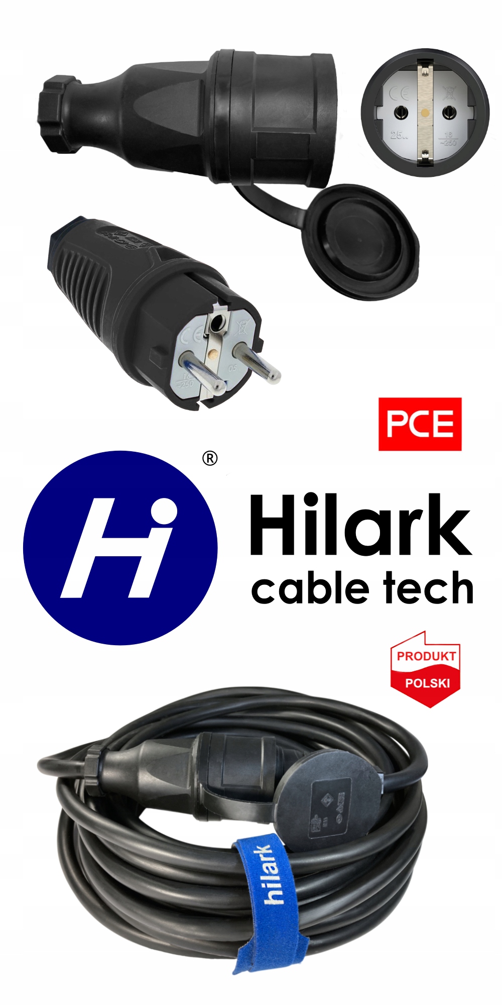 Profesjonalny przedłużacz wykonany z przewodu NSHTÖU-J 3×2,5mm² oraz najwyższej klasy komponentów marki PCE IP54 (wtyczka + gniazdo); do w najcięższych warunkach, zarówno na zewnątrz, jak i wewnątrz pomieszczeń.