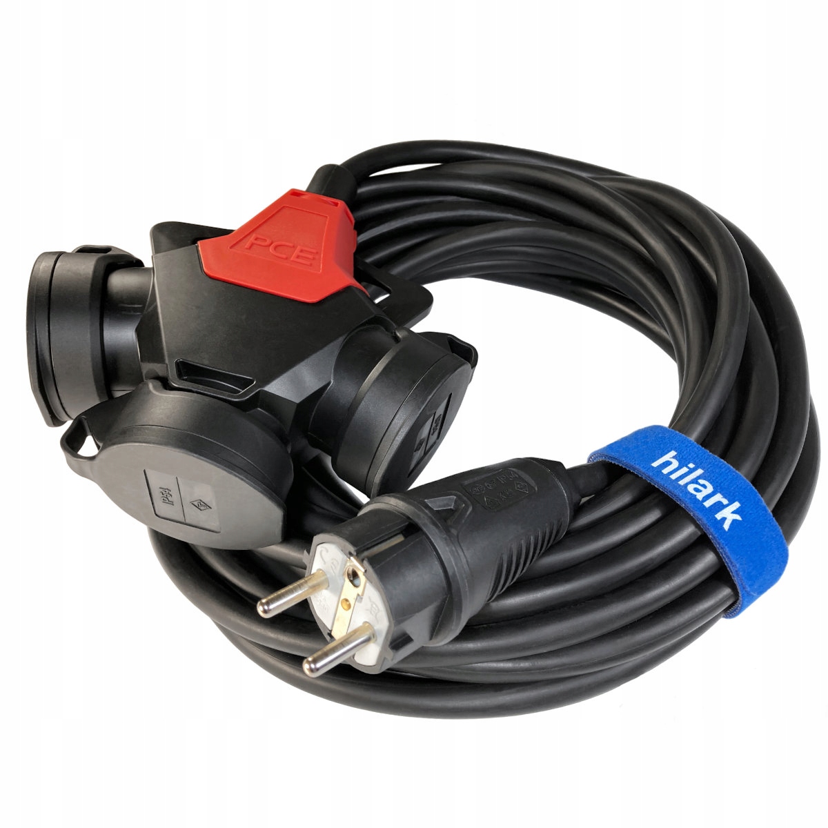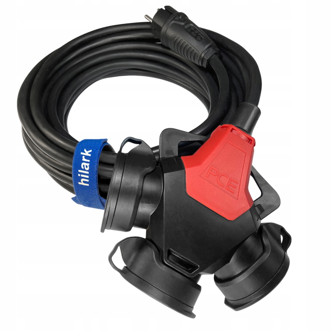 Profesjonalny przedłużacz wykonany z przewodu NSHTÖU-J 3×2,5mm² oraz najwyższej klasy komponentów marki PCE IP54 (wtyczka + rozgałęźnik). Zaprojektowany z myślą o pracy w najcięższych warunkach, zarówno na zewnątrz, jak i wewnątrz pomieszczeń.