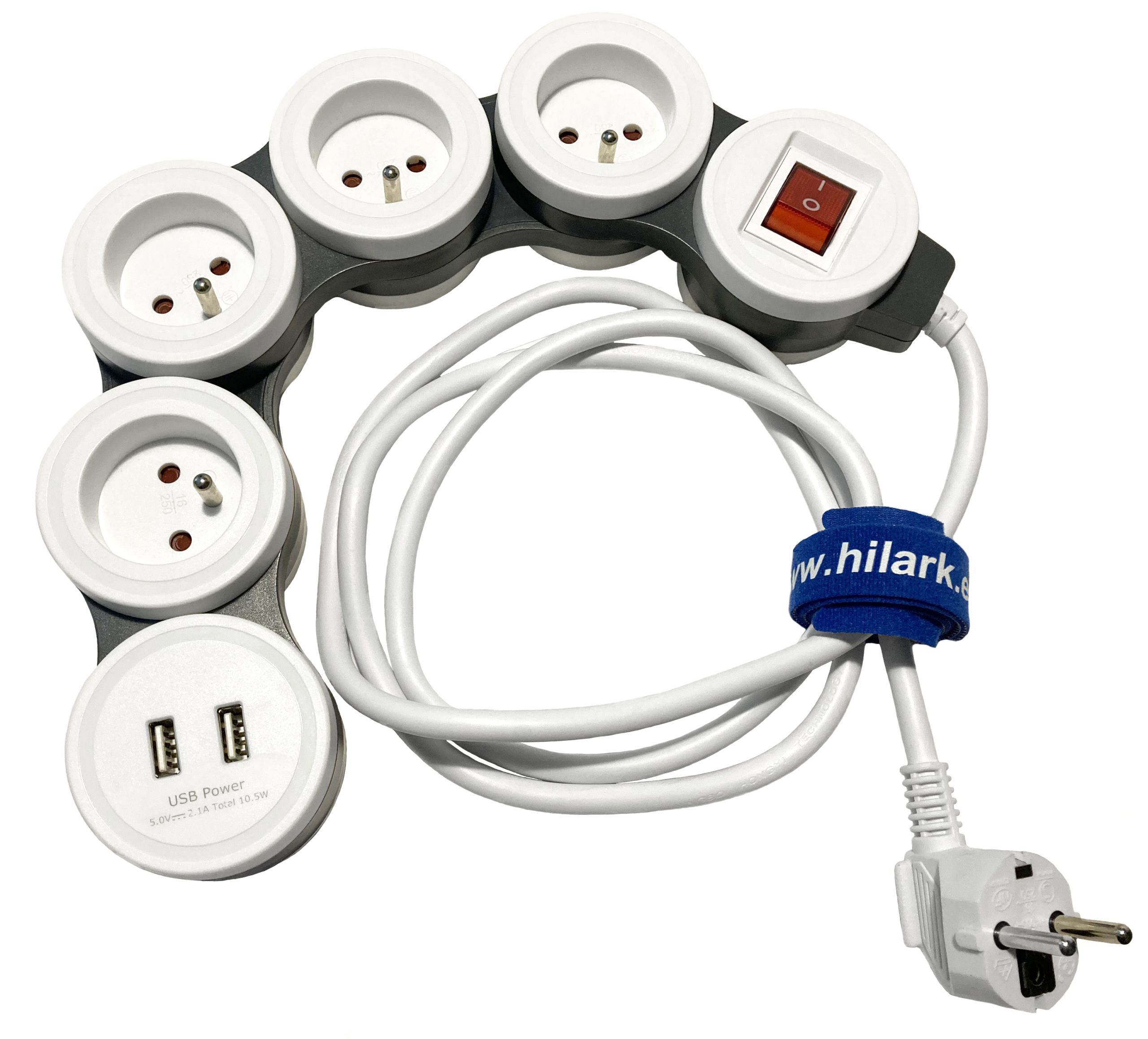 Przedłużacz z ładowarką do telefonu USB 2.1A z zabezpieczeniem przeciwprzepięciowym