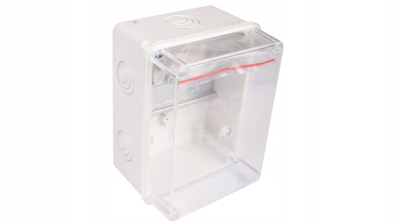 Équipé d’un rail TH-35 et de 2 presse-étoupe en caoutchouc fi 20 pour l’introduction/l’extraction des câbles.