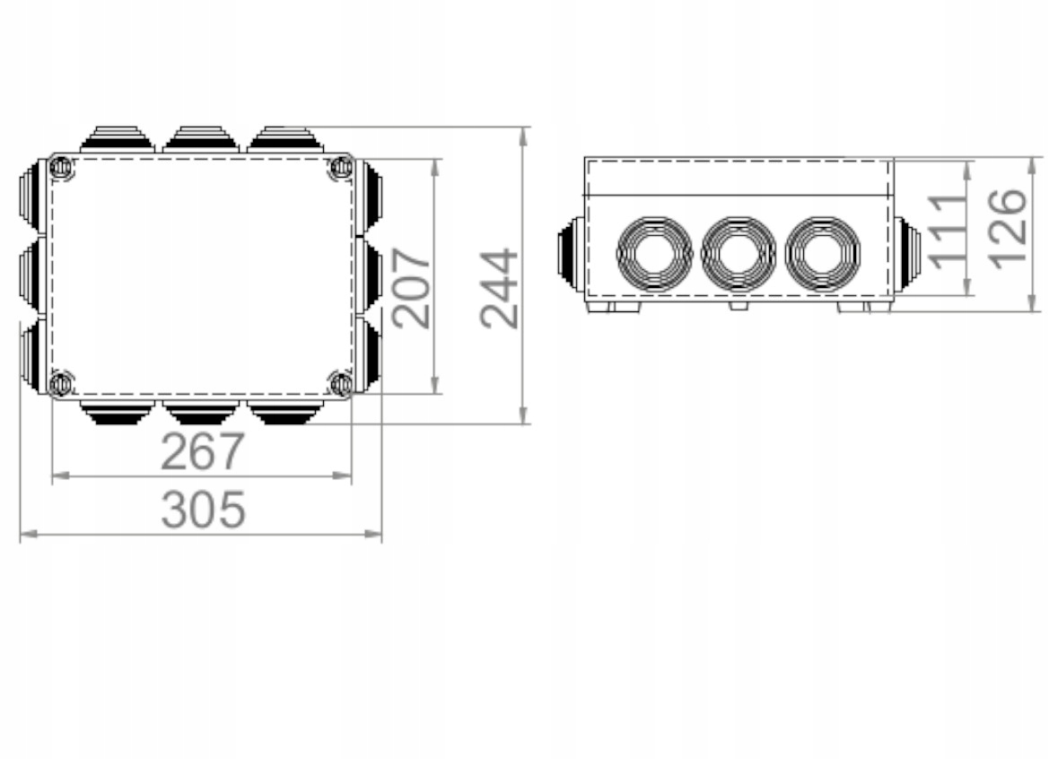 INDUSTRIAL Boîtier hermétique n/t 305x244x126mm avec 12 presse-étoupe IP55 gris 2721-02