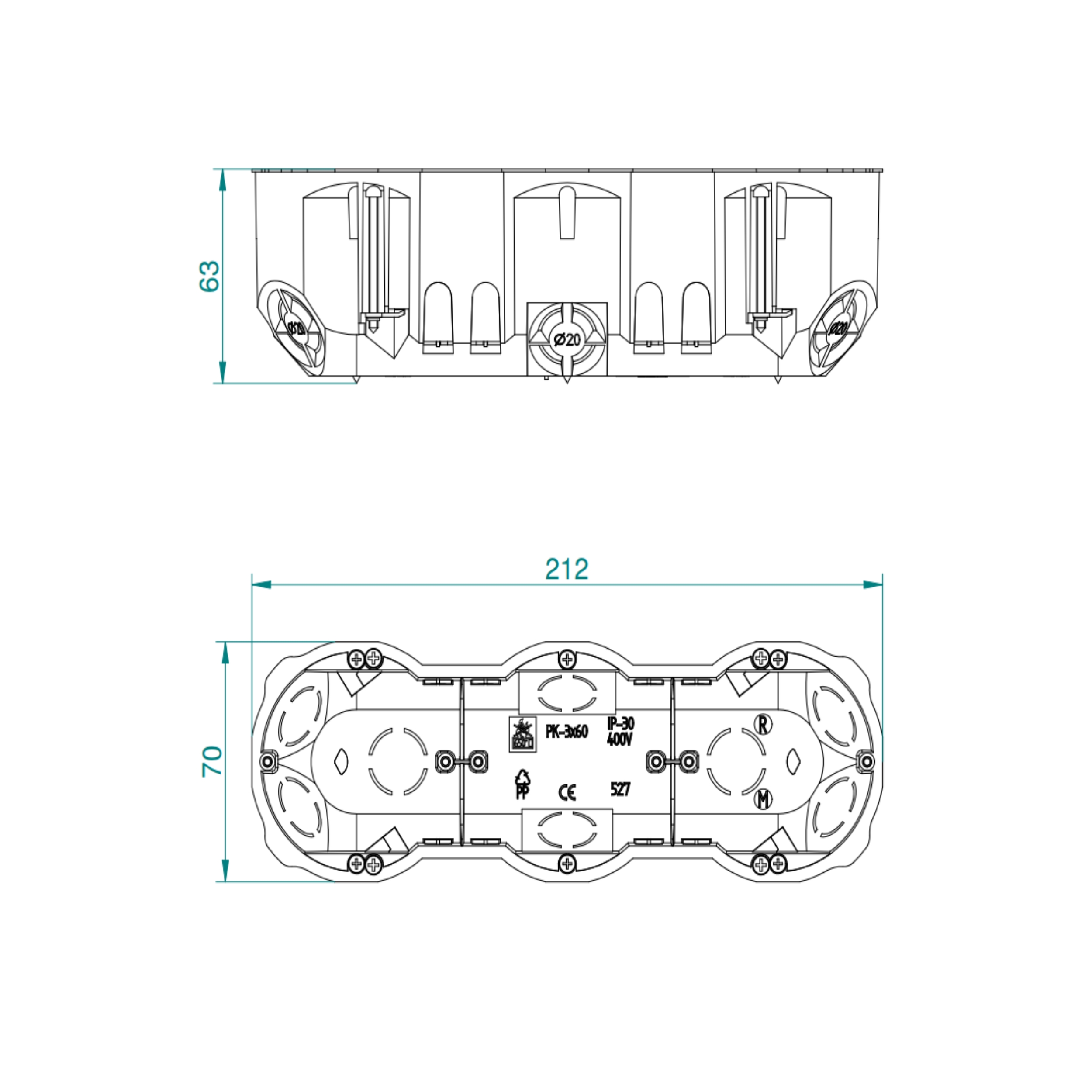 Boîte d’installation ENCASTRÉE PROFONDE 3×60 ELEKTRO-PLAST