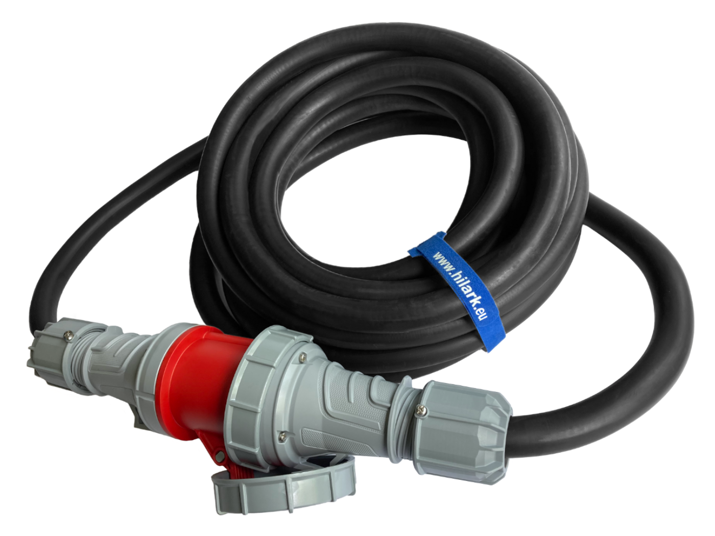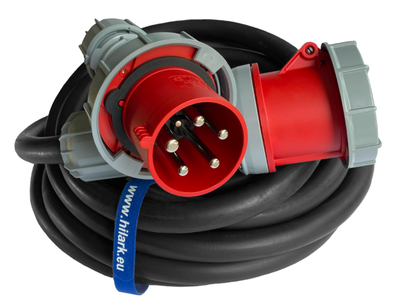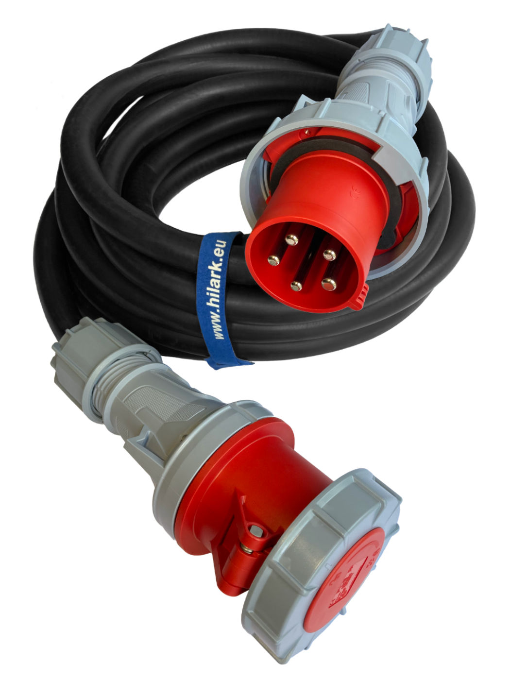 - Caoutchouc type Néoprène, indice de protection IP 44, prises de marque PCE – démontables à vis, non surmoulées, 63A
