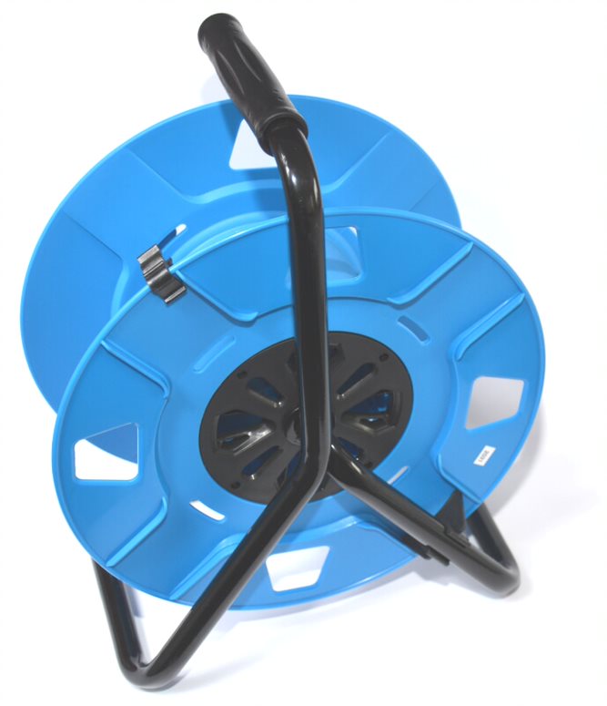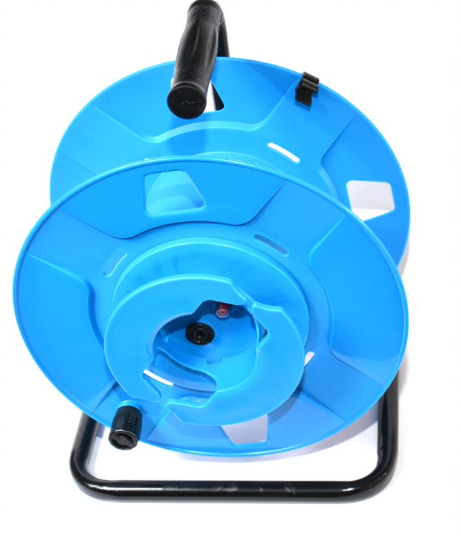 Rallonge de jardin H07BQ-F 3G2,5 bleue 750V sur enrouleur inversé avec fiche et prise 25m