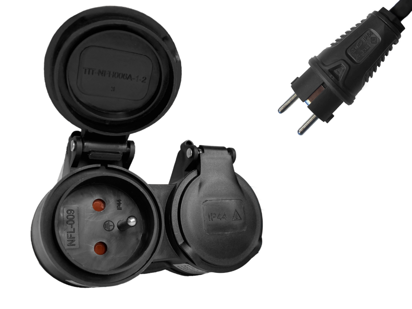 Rallonge en caoutchouc H07RN-F 3G2,5 mm avec répartiteur 2 prises 30m