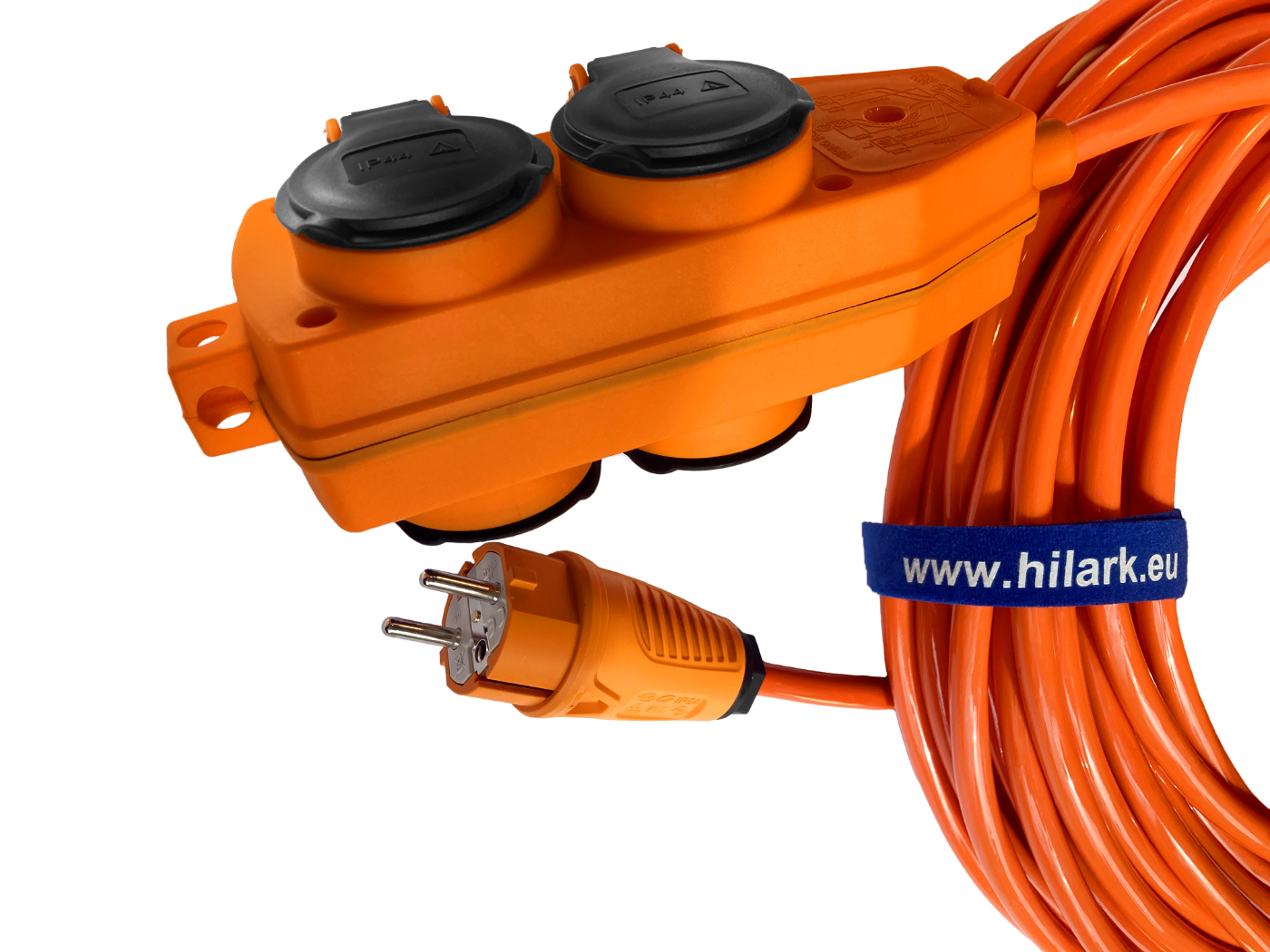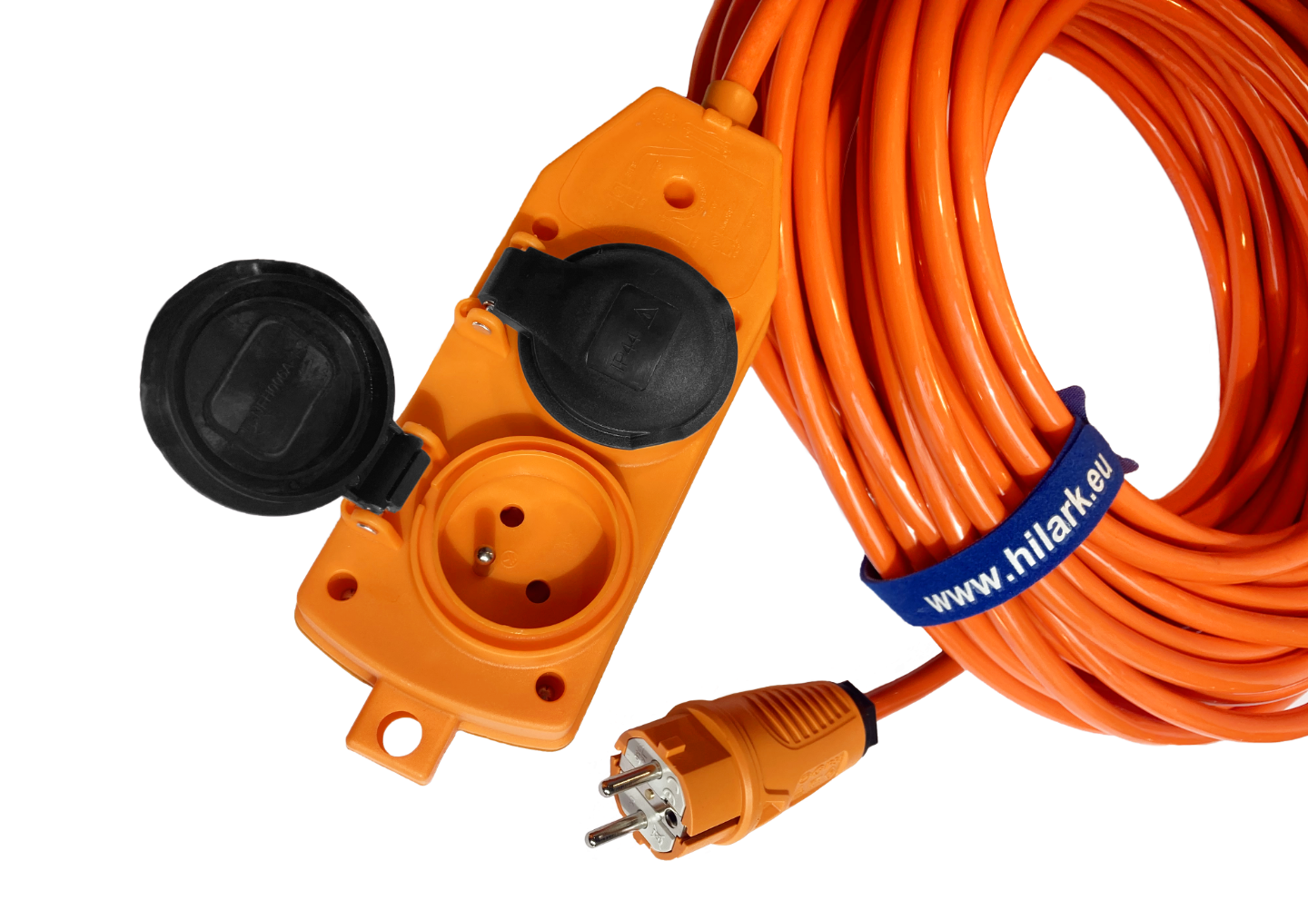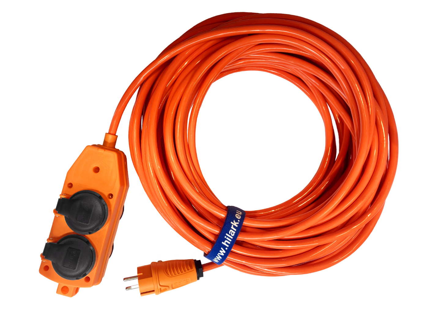 *l’objet de l’annonce est une rallonge électrique avec un répartiteur orange et une fiche orange