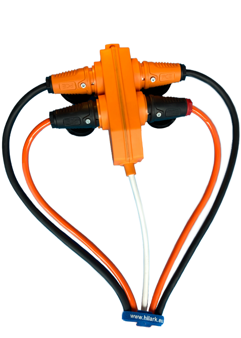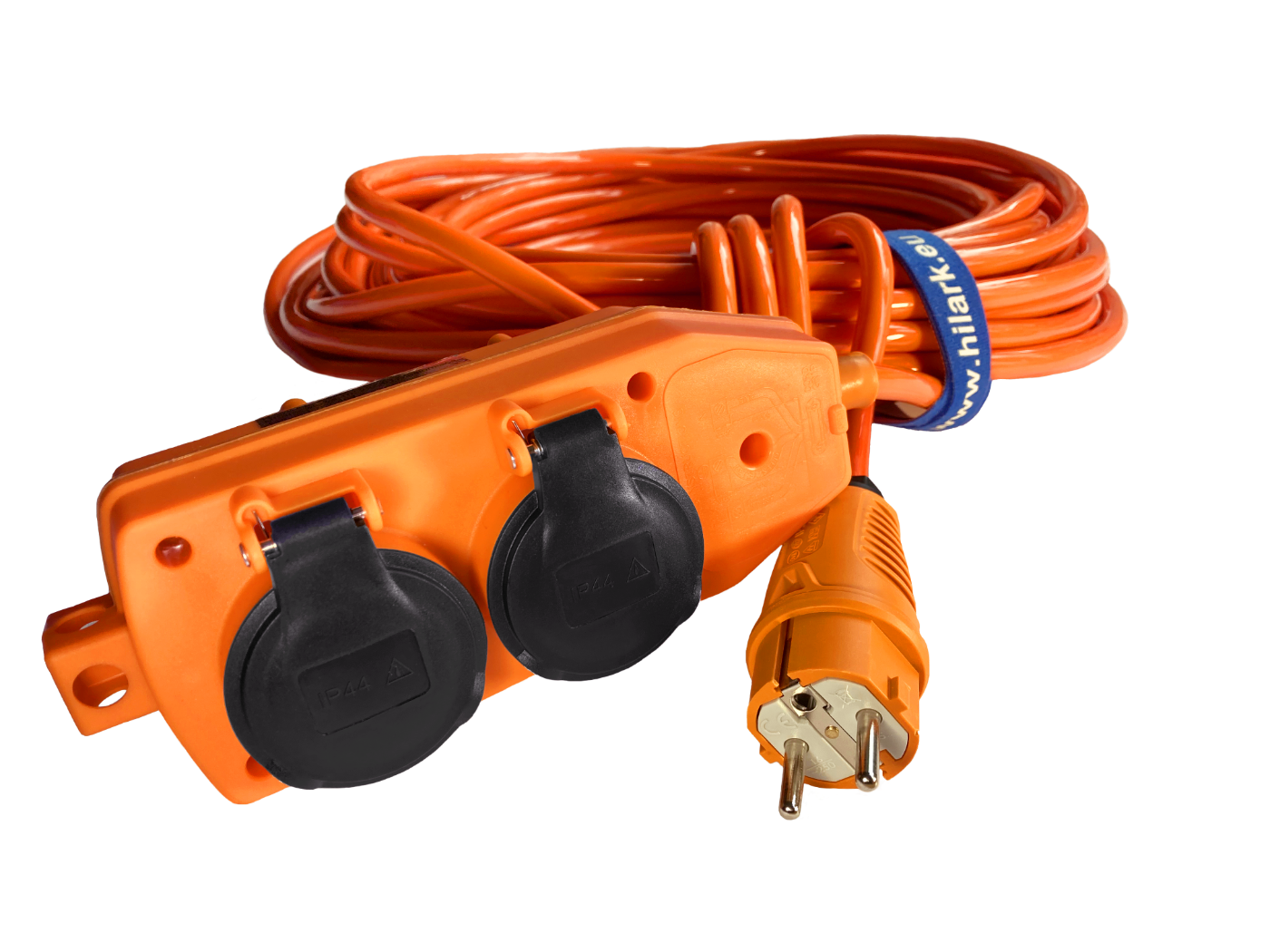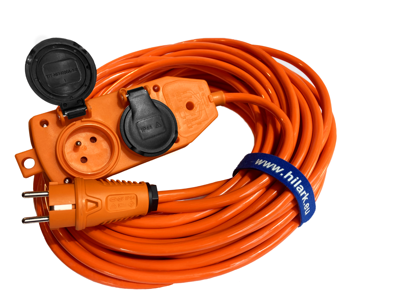 *l’objet de l’annonce est une rallonge électrique avec un répartiteur orange et une fiche orange