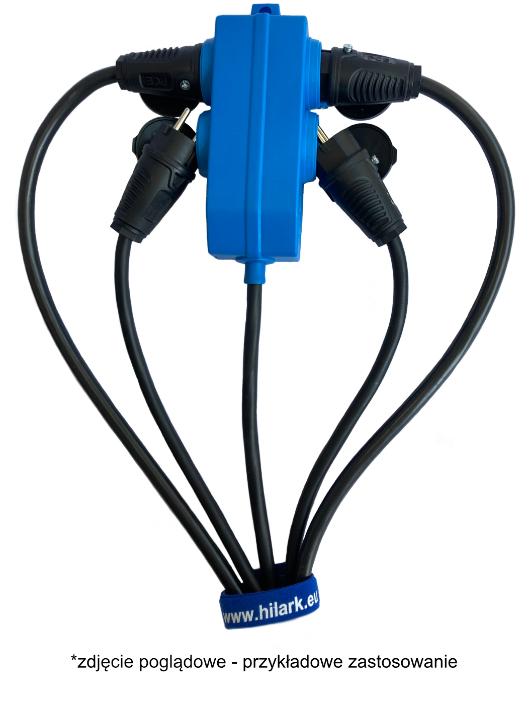 - Enrouleur inversé facilite l’utilisation – il est connecté directement à la source d’alimentation et le câble déroulé se termine par un répartiteur à 4 prises