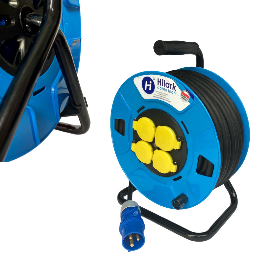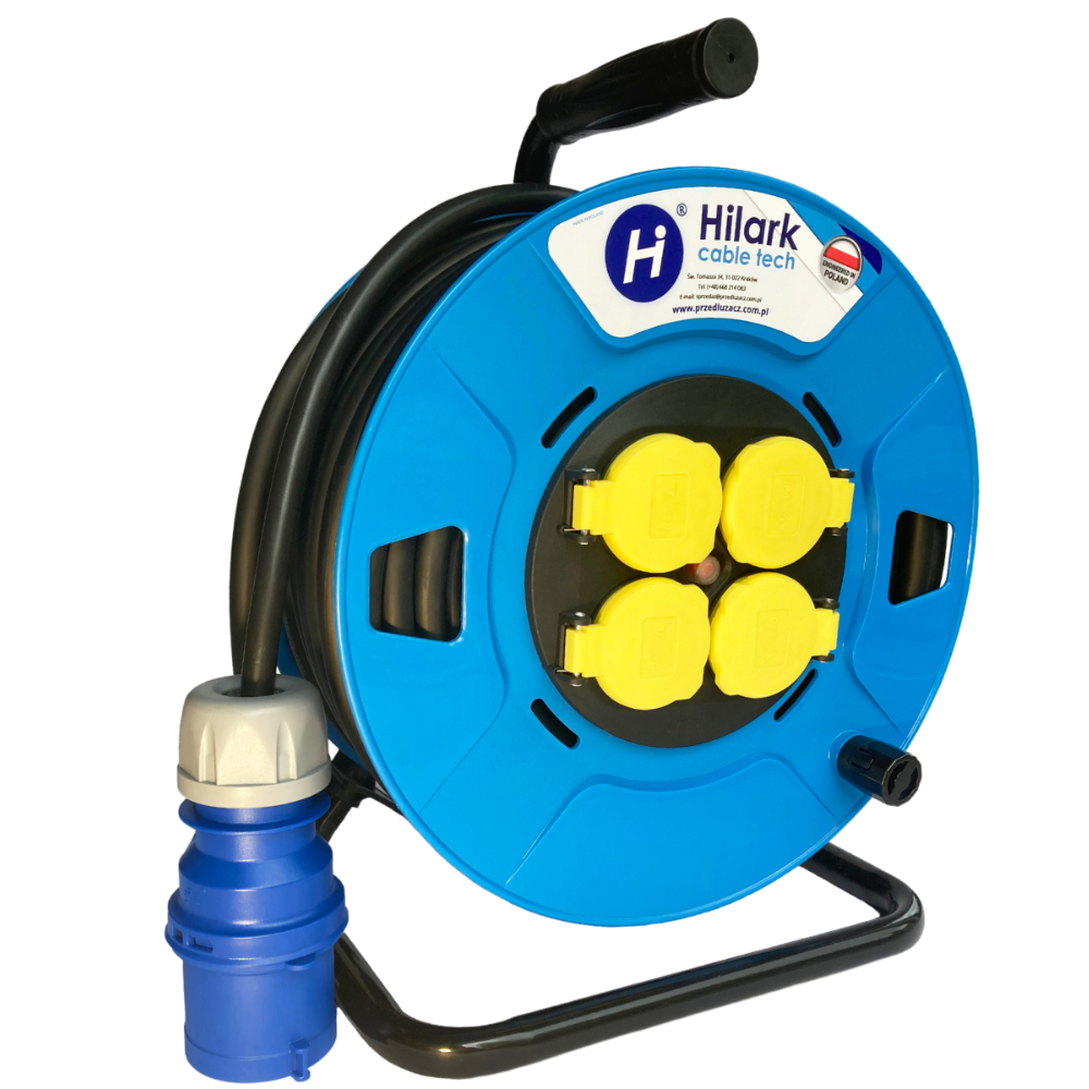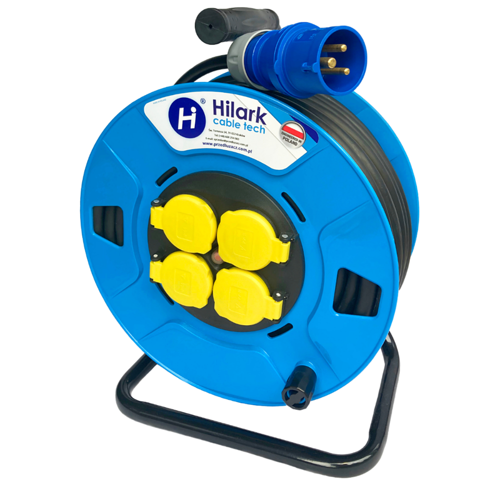 Rallonge réalisée à base de câble PVC 3g1,5, convient aussi bien à l’extérieur qu’en intérieur, dans les endroits humides, secs et chauds, avec de faibles contraintes mécaniques (ex. : pour brancher un lave-linge, un essoreur et un réfrigérateur). Rallonge sur enrouleur avec 4 prises d’indice de protection IP44, réalisée à base de câble PVC équipée d’une fiche de haute qualité PCE, permet une utilisation sécurisée de la rallonge dans des conditions variées de travail, à des températures au-dessus de zéro. L’enrouleur permet un déroulement et un enroulement rapide et facile du câble de la rallonge, et grâce à la poignée ergonomique caoutchoutée permet un transport confortable. Grâce à l’utilisation de 4 prises, il est possible de distribuer la tension ainsi que de connecter simultanément plusieurs appareils à une seule source d’alimentation, en tenant compte de la charge maximale de la rallonge.