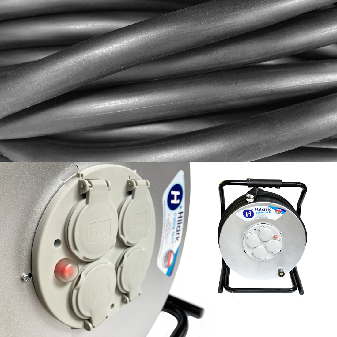 Rallonge en caoutchouc robuste, sur grand enrouleur avec 4 prises 45m