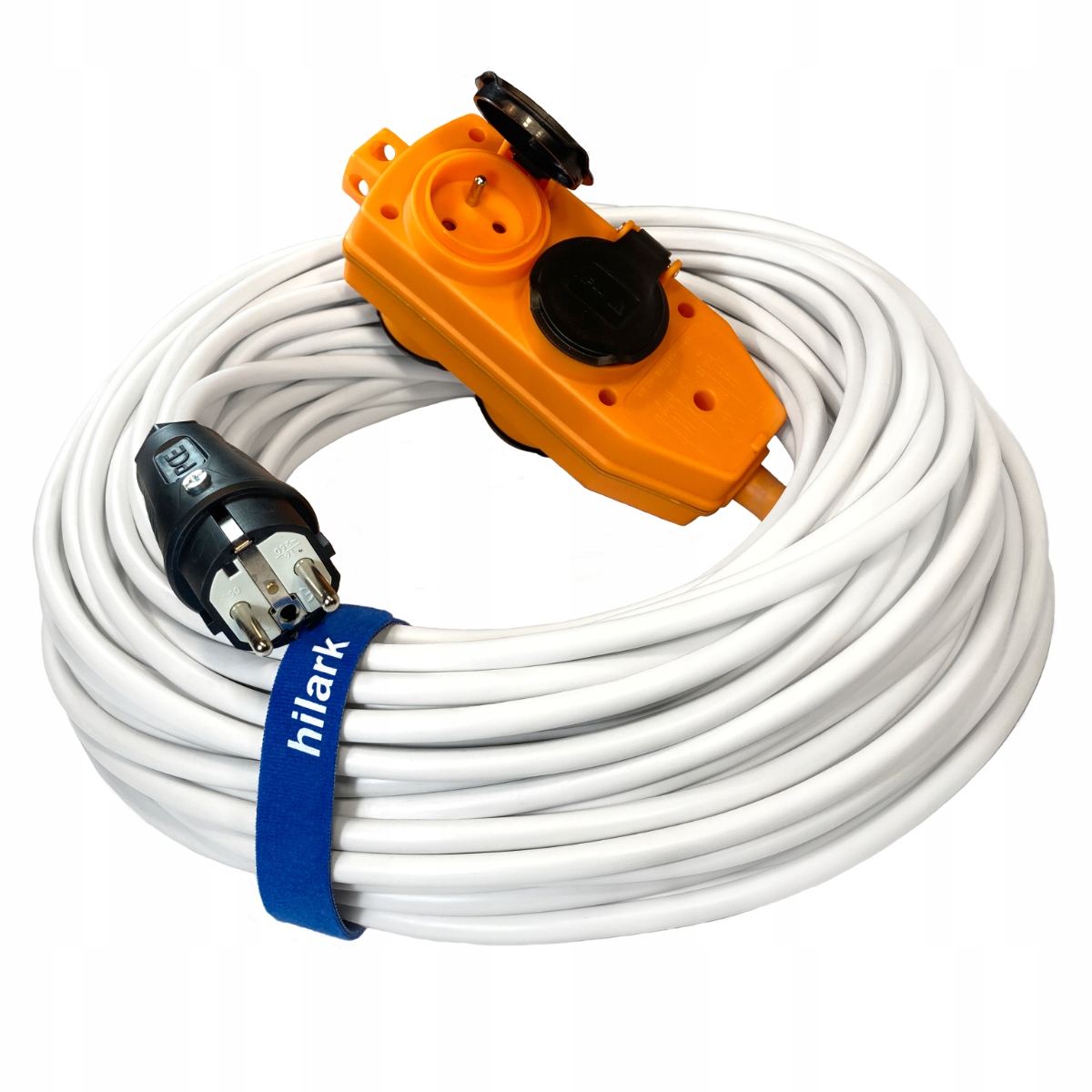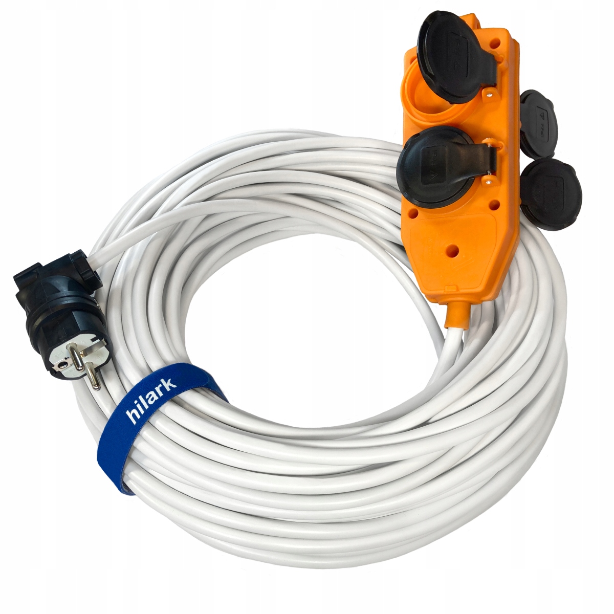 UTILISATION : Rallonge électrique Hilark destinée à un usage général dans les locaux secs ou humides. Pour usage domestique, dans les bureaux, ateliers de couture et pour l’alimentation d’appareils ; où les câbles sont soumis à de faibles contraintes mécaniques. Pour des appareils tels que : aspirateurs, machines à laver, essoreuses ; pour des appareils de jardin tels que les tondeuses à gazon ; ou pour des appareils d’atelier ; par exemple des perceuses. Elle peut être utilisée partout où il n’y a pas de risque de contact avec des éléments chauds et où elle n’est pas exposée à d’autres sources de chaleur. Le répartiteur à 4 prises permet de connecter plusieurs appareils simultanément, et la fiche coudée permet de brancher la rallonge même dans des endroits à espace limité. Rallonge robuste avec répartiteur à 4 prises, indispensable partout où un branchement sécurisé de plusieurs appareils simultanément est nécessaire