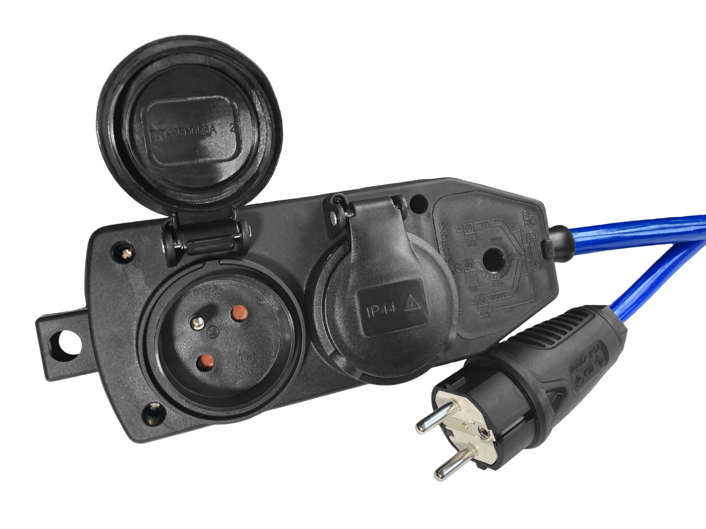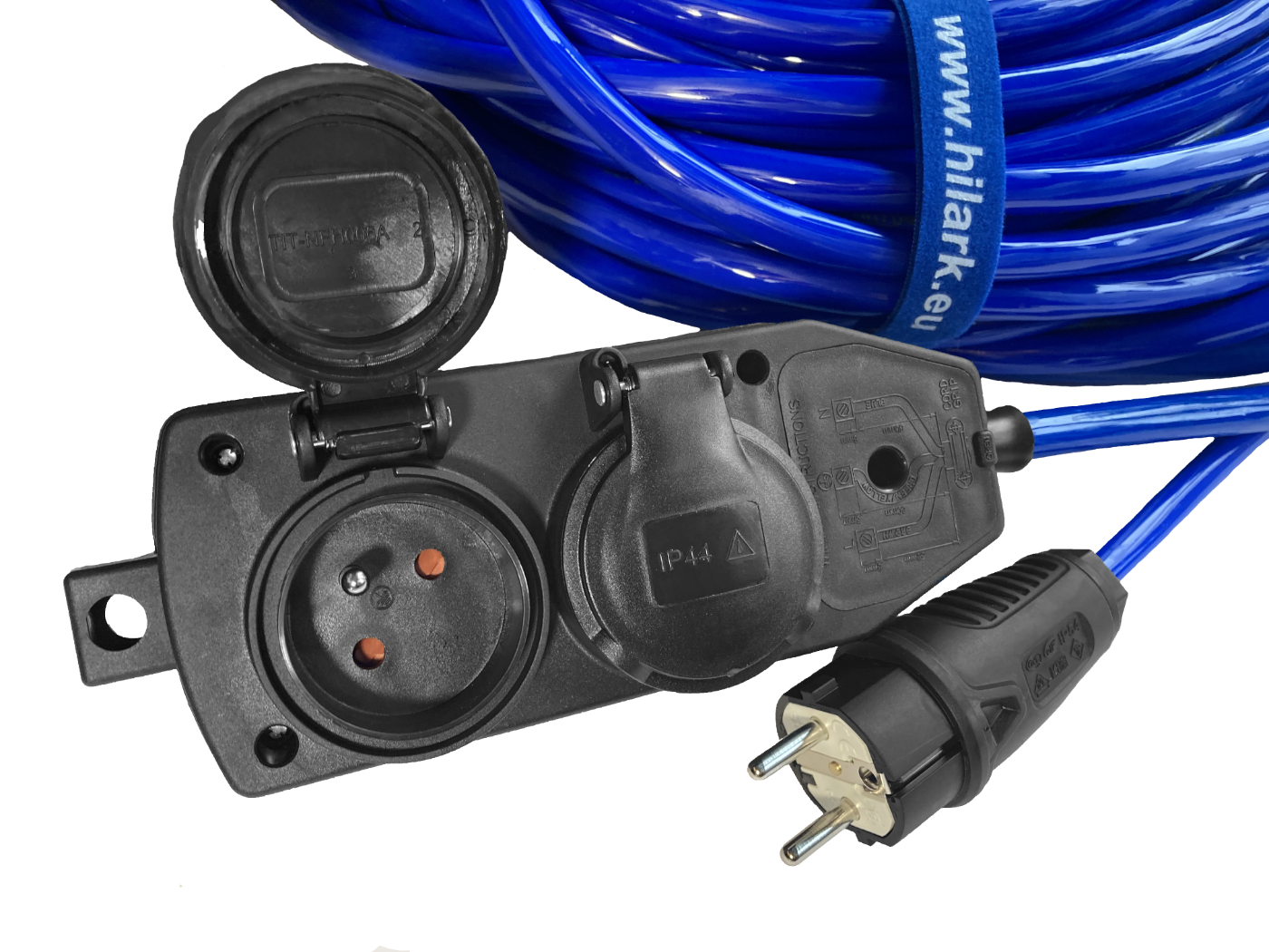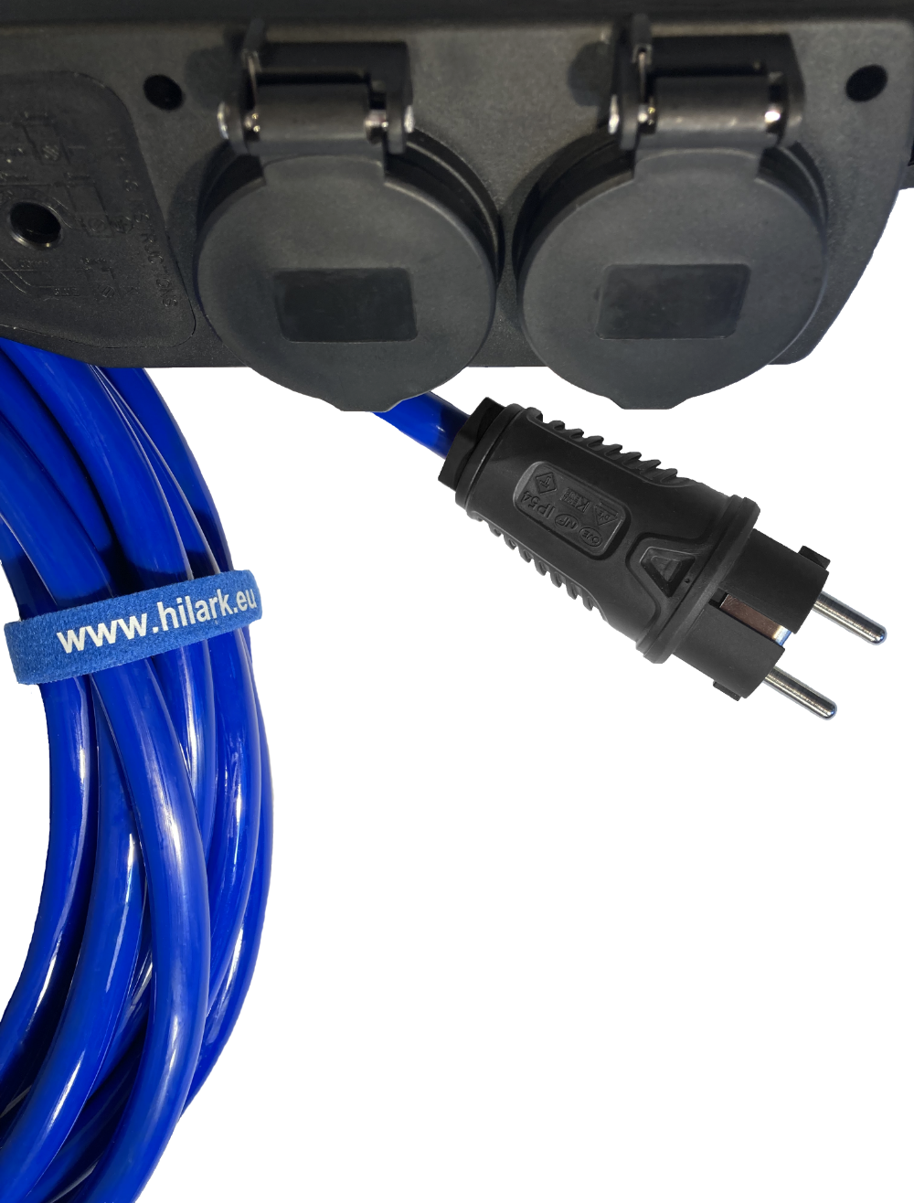 Rallonge H07BQ-F 3×2,5mm2 20m RÉPARTITEUR 4+1 BLEU