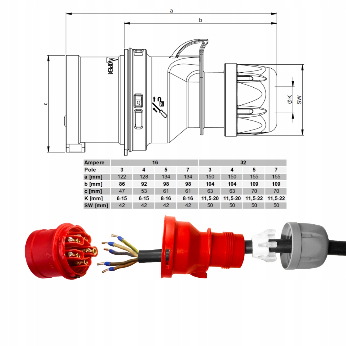 - la fiche possède un boîtier en matériau PA6, qui garantit une longue durée de vie du produit,