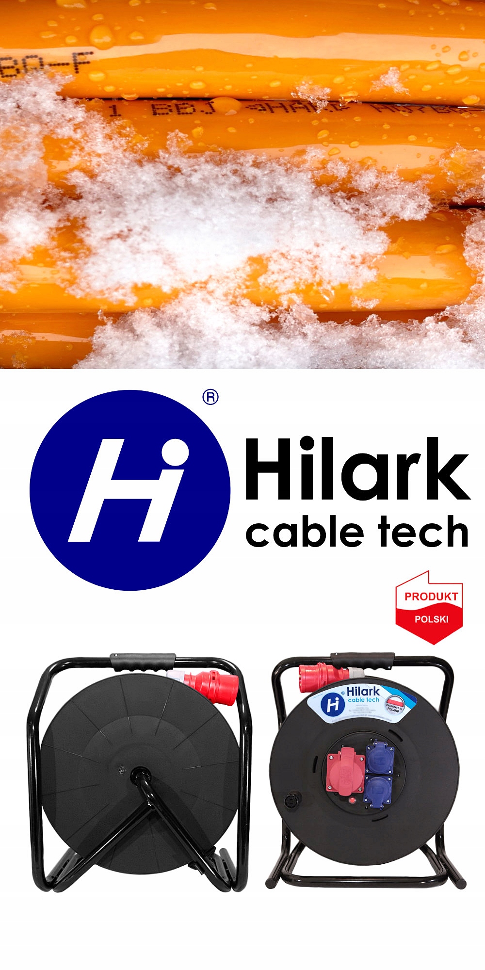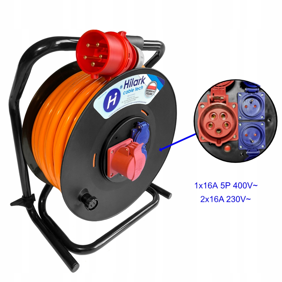 Hilark Rallonge triphasée CEE sur enrouleur avec fiche 16A 5P, Polyuréthane (PUR) 5g2,5 orange 20m