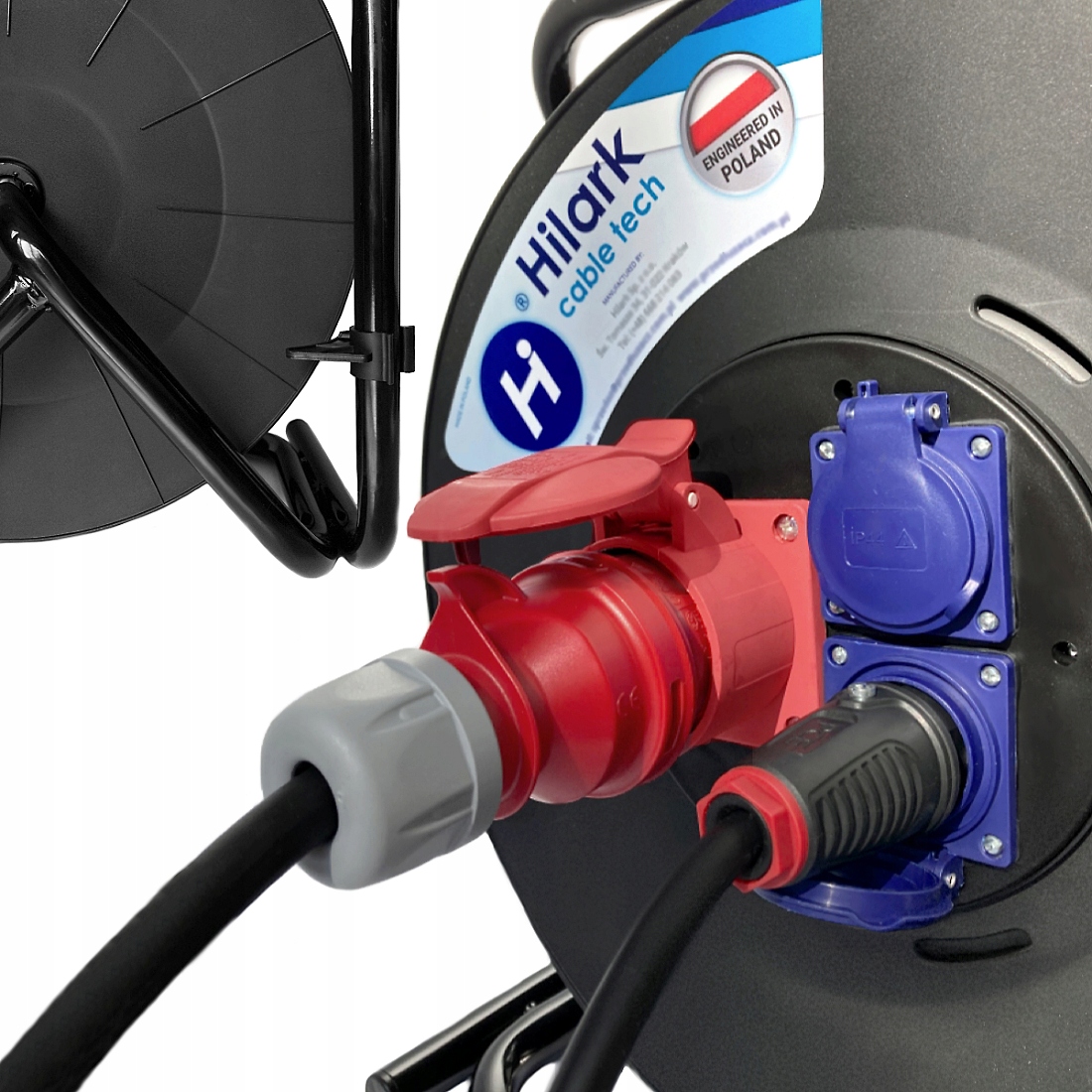 La Rallonge triphasée CEE en Polyuréthane (PUR) sur enrouleur, avec un Indice de protection IP IP44 garantit un fonctionnement sûr dans les endroits humides ou mouillés, également destinée aux applications extérieures ; et aux raccordements de machines et d’installations dans des zones où peuvent survenir des dommages mécaniques, des contraintes, de l’humidité et des poussières. L’enrouleur solidement construit permet un déroulement et un enroulement rapides et faciles du câble de la rallonge, et grâce à la poignée ergonomique en caoutchouc, il peut être transporté confortablement vers l’endroit souhaité. Grâce à l’utilisation d’un enrouleur avec trois prises, il est possible de distribuer la tension et de connecter simultanément plusieurs appareils à une seule source d’alimentation. Il convient parfaitement comme équipement pour les ateliers industriels, agricoles, dans les chantiers navals, pour connecter de l’outillage électroportatif (perceuses, scies circulaires, moteurs portables et générateurs) aux équipements de chantier, agricoles et commerciaux. Indispensable dans les endroits où un câble fiable et résistant ainsi qu’un transport d’énergie triphasée sont nécessaires.