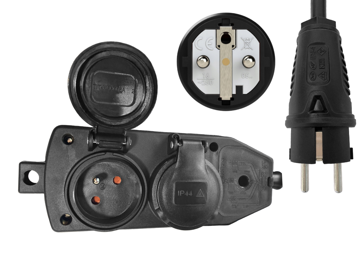 - Prises et fiches de type UniSchuko – standard polonais (avec broche de terre et ouverture)
