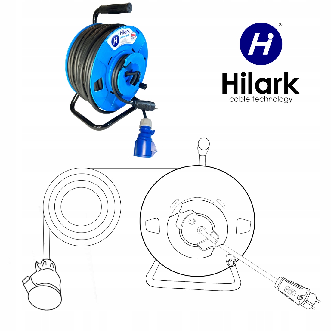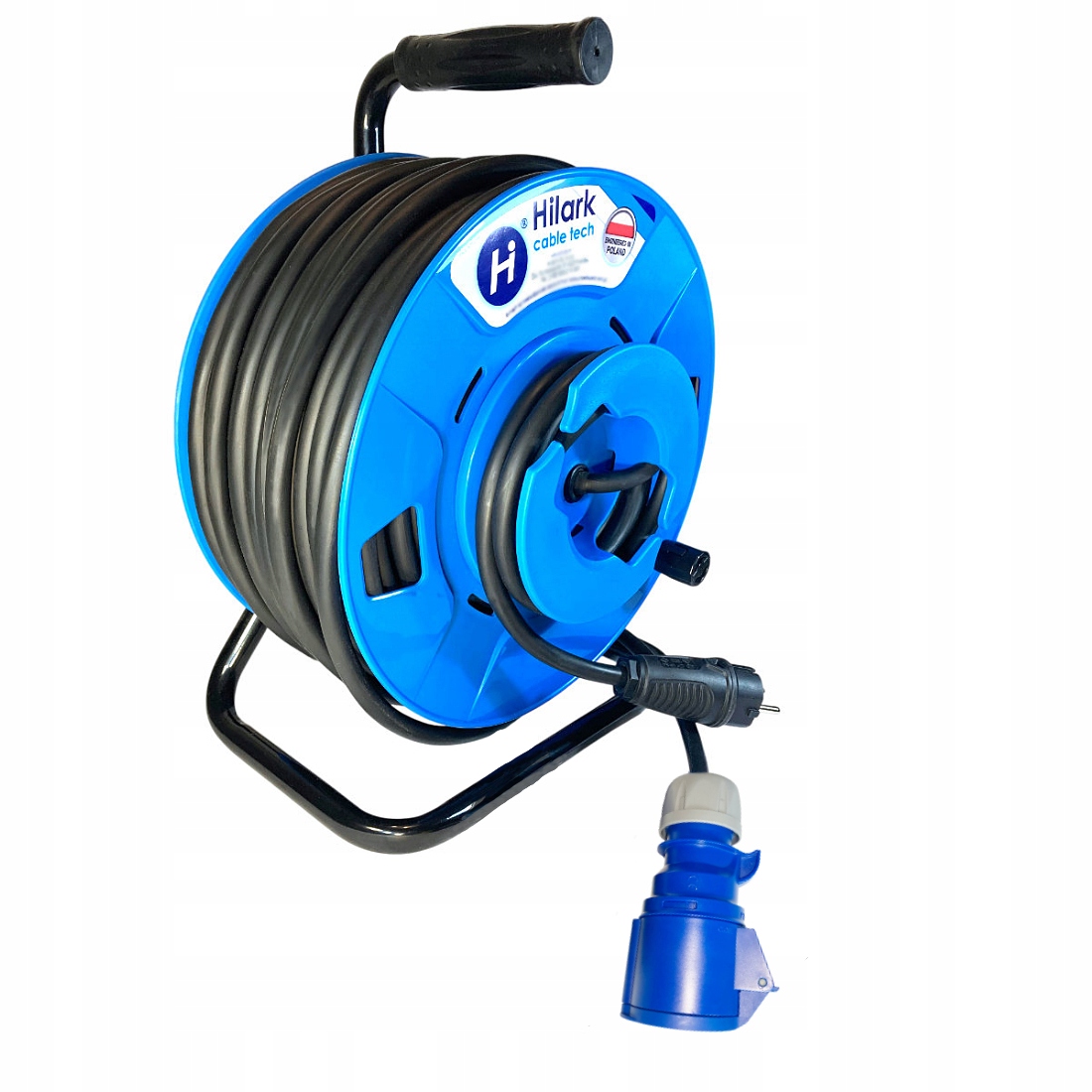 *l’objet de l’annonce est une rallonge sur enrouleur bleu avec une prise bleue et une fiche noire