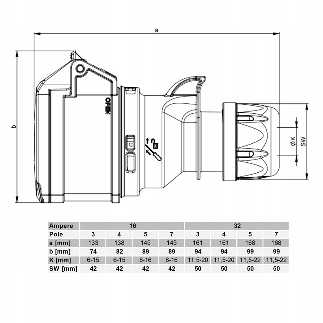 - Courant nominal : 16A