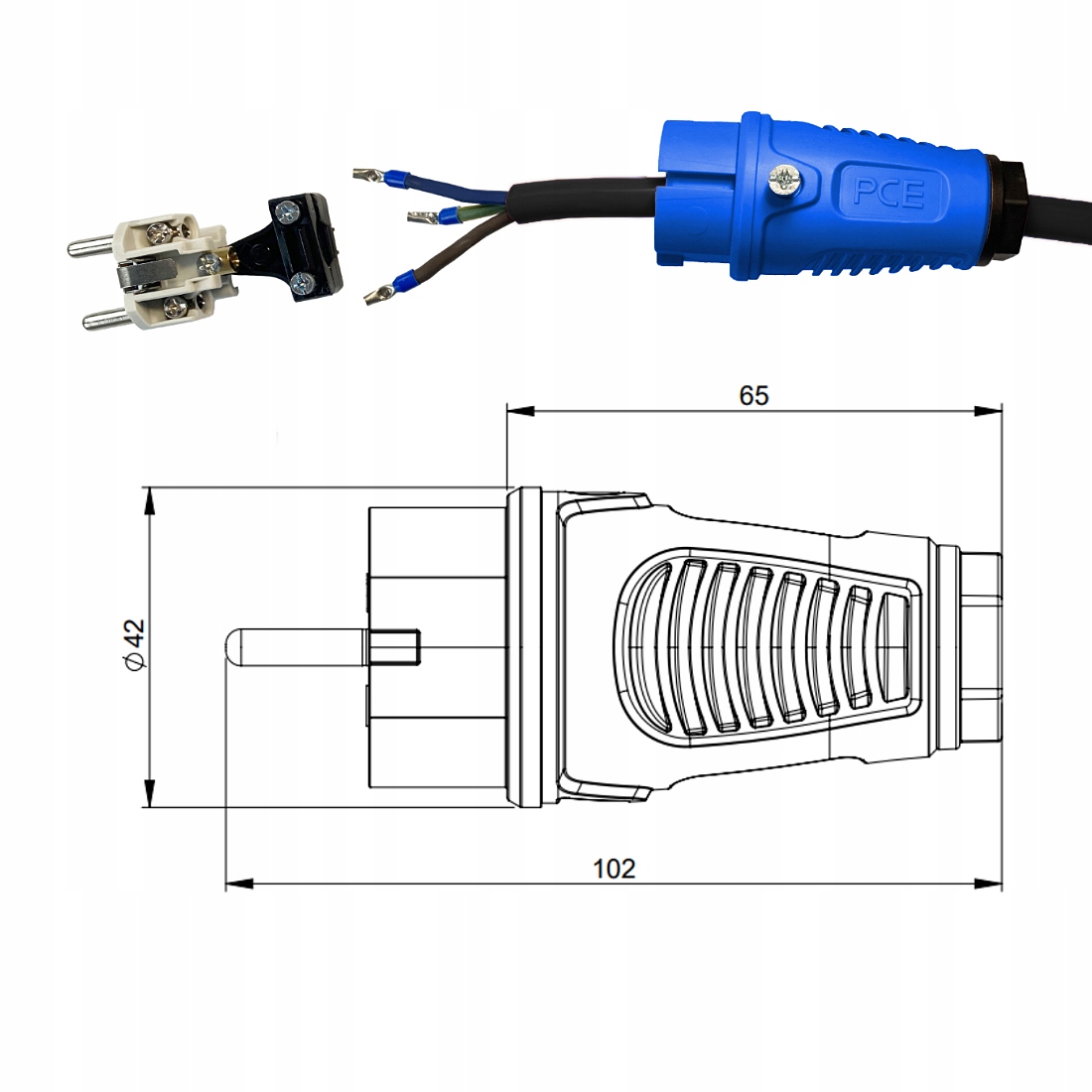 Rallonge en caoutchouc, robuste avec prise et fiche PCE bleues 230V 5m