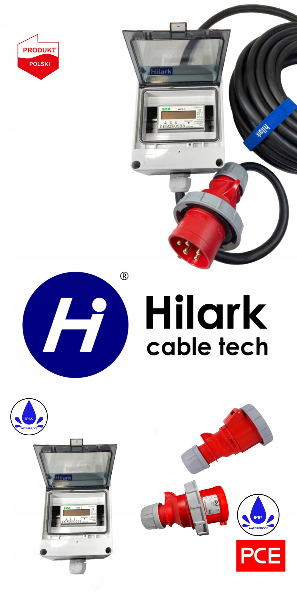 UTILISATION : pour les grandes installations de chauffage, plaques chauffantes, éclairage de secours, outillage électroportatif tels que perceuses, scies circulaires, moteurs électriques, équipements scéniques et audiovisuels, équipements de manutention, alimentations mobiles, pour différents types de nacelles. Le câble Néoprène H07RN-F 5×4 avec une prise de haute qualité et une fiche PCE à haute résistance IP67, permet une utilisation sûre de la rallonge dans des endroits où elle est exposée aux huiles ou aux graisses, dans des conditions atmosphériques difficiles, dans des endroits secs et humides aussi bien à l’intérieur qu’à l’extérieur des locaux. Par ailleurs, l’indicateur installé dans un coffret de chantier à haute étanchéité IP65 permettra le contrôle de la consommation d’énergie électrique.