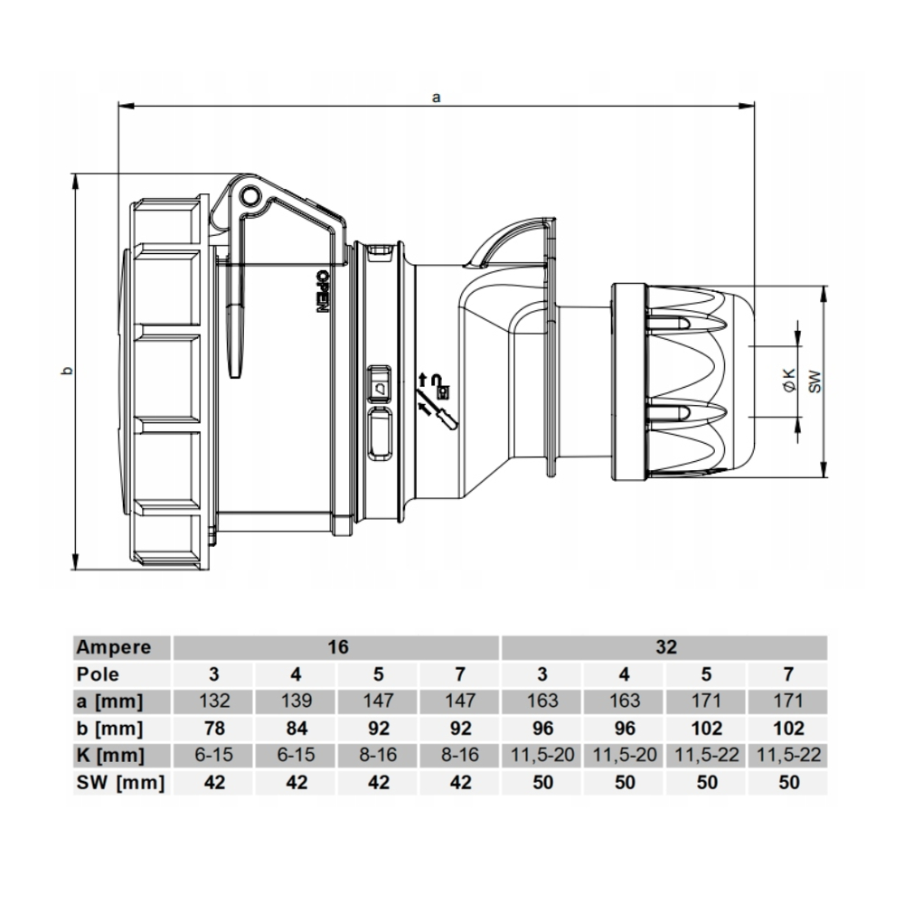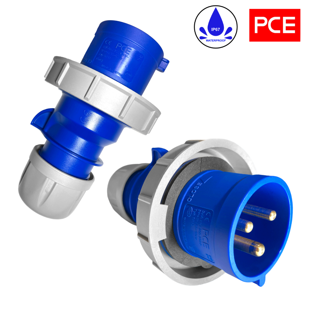 - Indice de protection IP 67, prises de marque PCE – démontables à usage multiple non surmoulées, 32A
