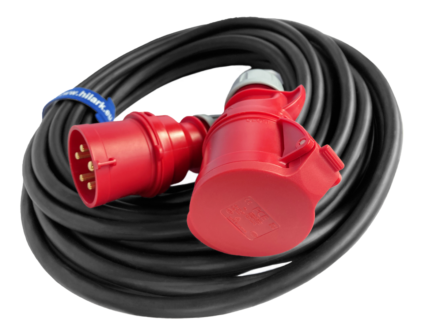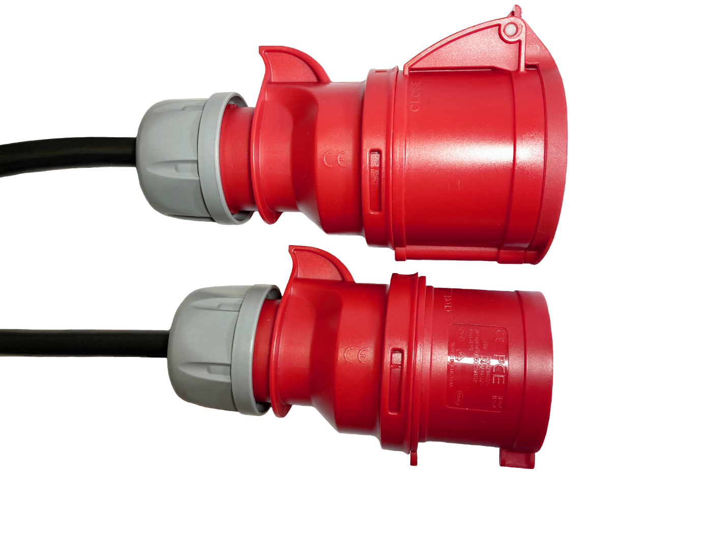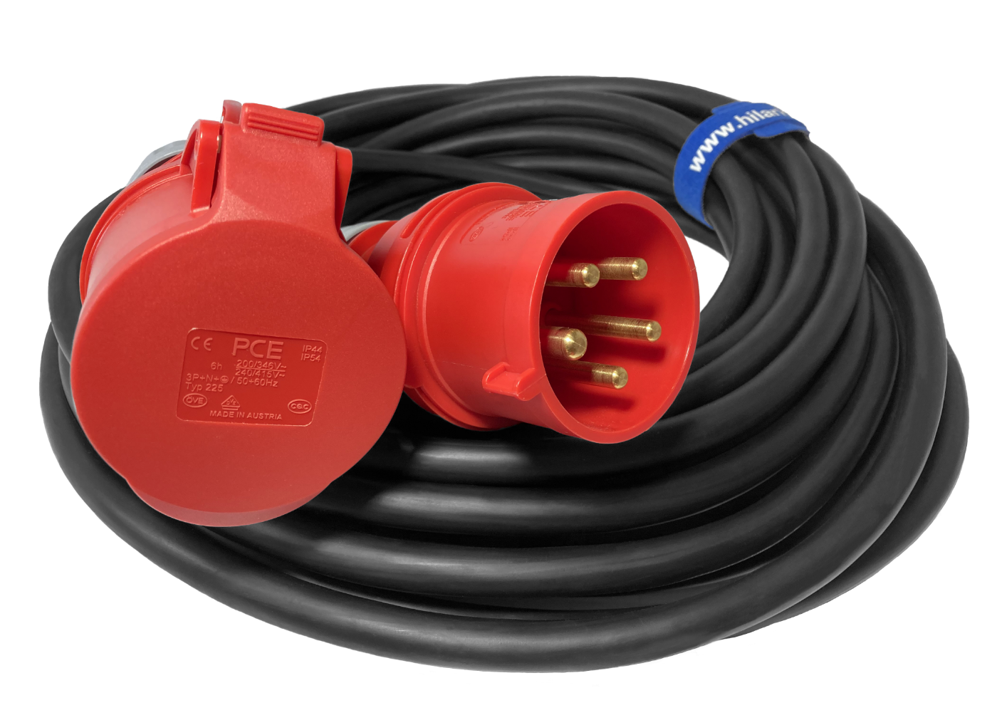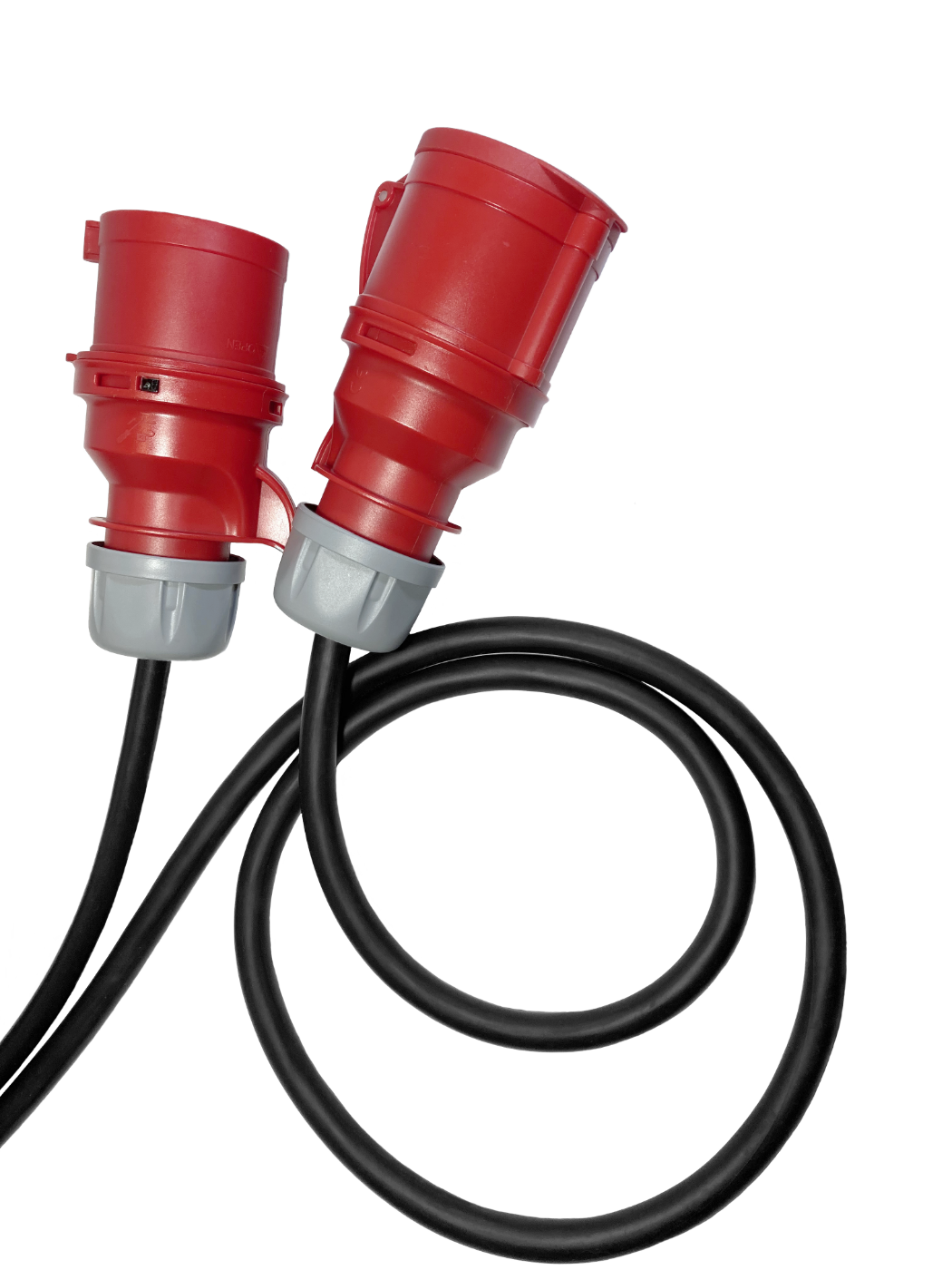 Rallonge triphasée CEE en caoutchouc – pour utilisation sur chantier, en atelier, au jardin et dans l’exploitation domestique